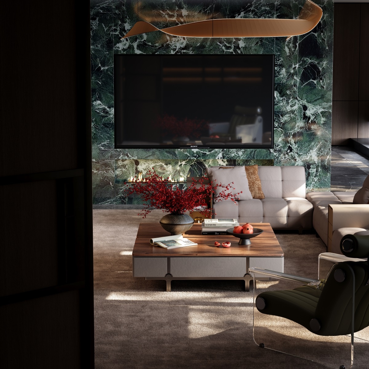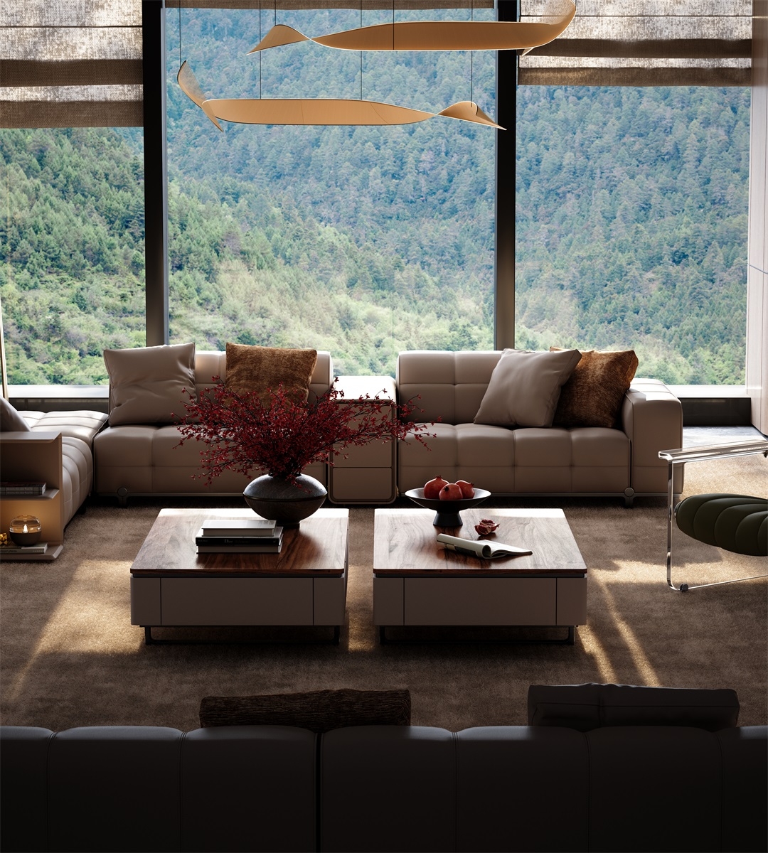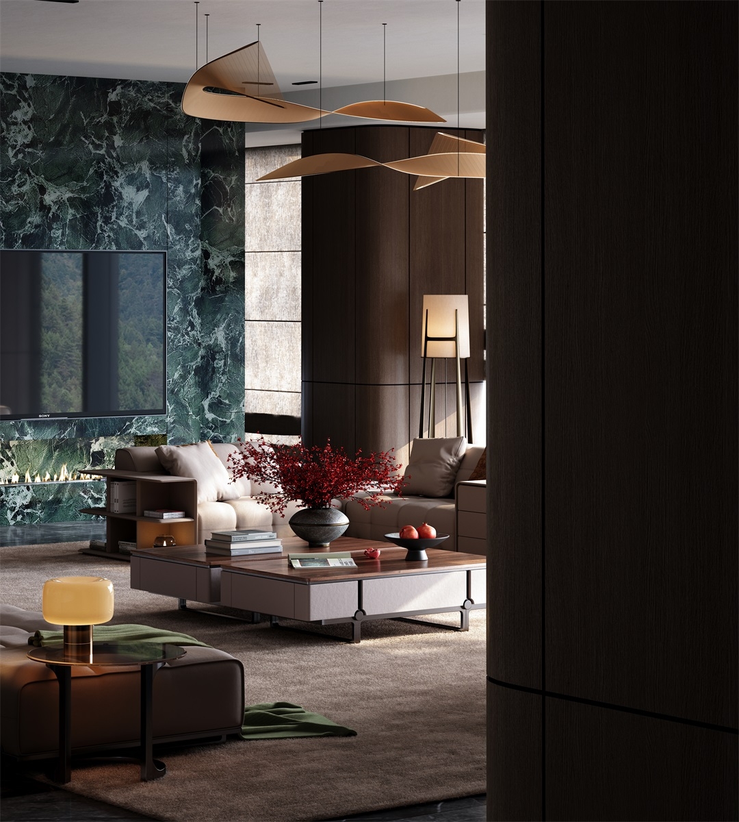 The open countertop is convenient for daily storage, and magazines and fruits are easily accessible. The hidden drawers are equipped with damping tracks invisible handles, which can be gently pushed and closed without noise. They can store small items such as remote controls and snacks, keeping the living room tidy. The design of low-lying cabinet body + suspended bracket not only ensures the storage function but also creates a light visual effect, bidding farewell to the clutter in the living room.