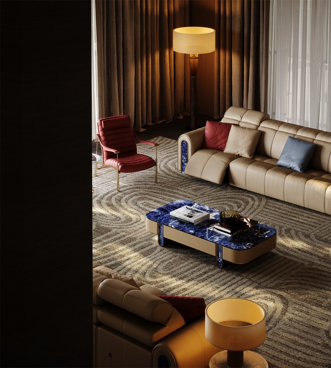Drawing inspiration from the Arc de Triomphe, the design translates the archway elements and their symbolic meaning of victory into the lines and connotations of the sofa.