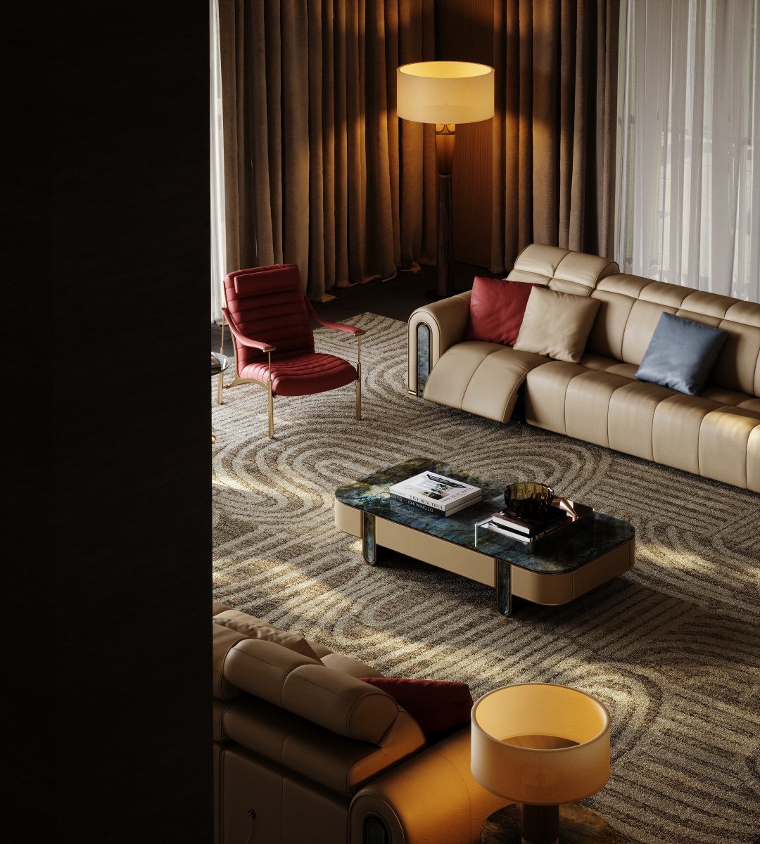 it merges composure and capability with modern, fashionable elements, creating a living space that embodies