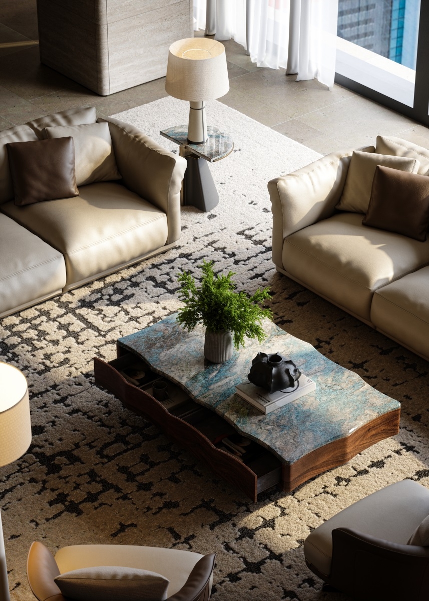 Each object is like a quiet isle resting in space—embracing the natural essence of raw materials, shaped by clean lines,