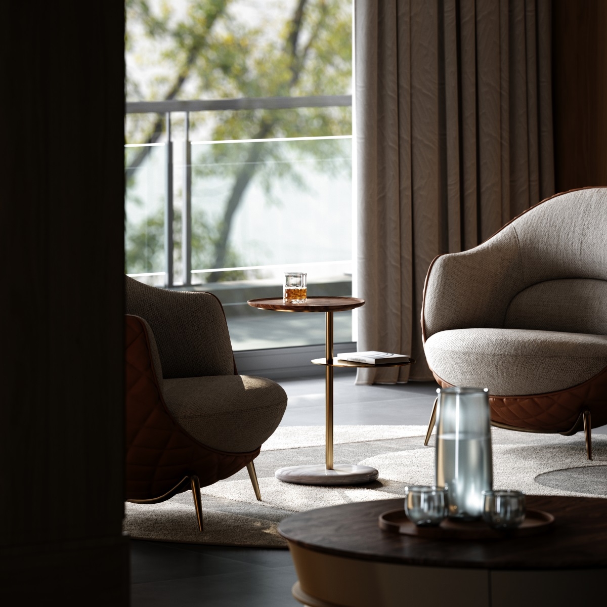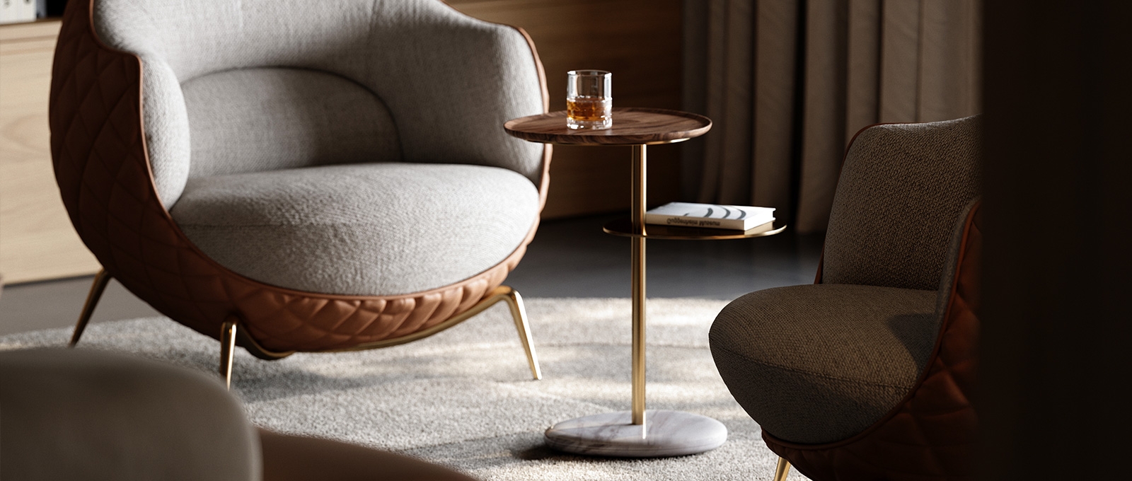 Function and structure, boundaries and integration, aesthetics and quality are synonymous with this corner table, interpreting multiple rich words with different materials and showcasing a unique aesthetic language.