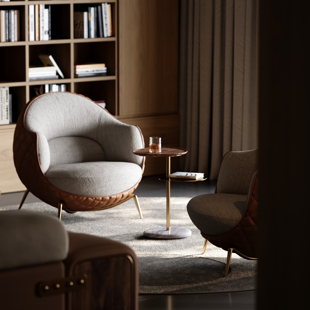 Circle is particularly important in Eastern and Western cultures, symbolizing reunion, completeness, and happiness. The designer drew inspiration from the concept of circles in architecture, incorporating the symbolism of circles into their designs and creating a series of satisfying works.
