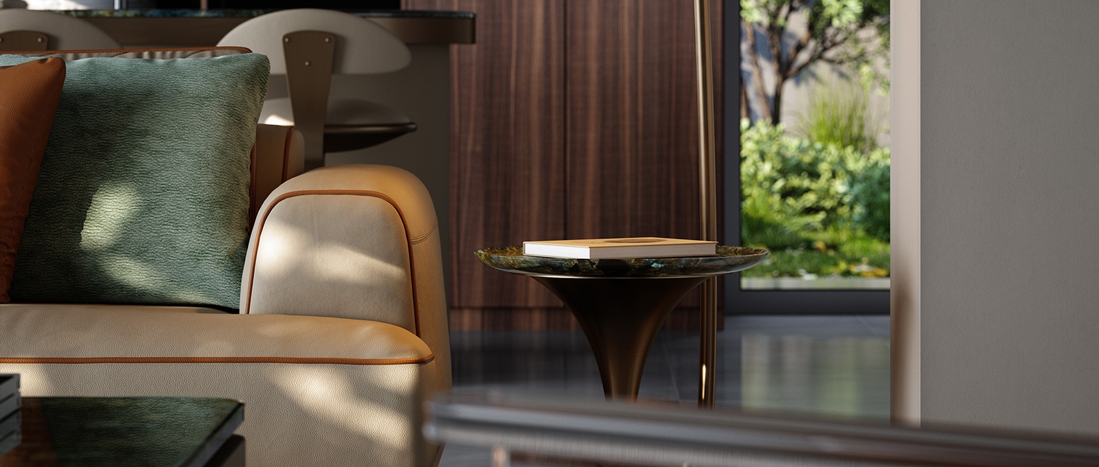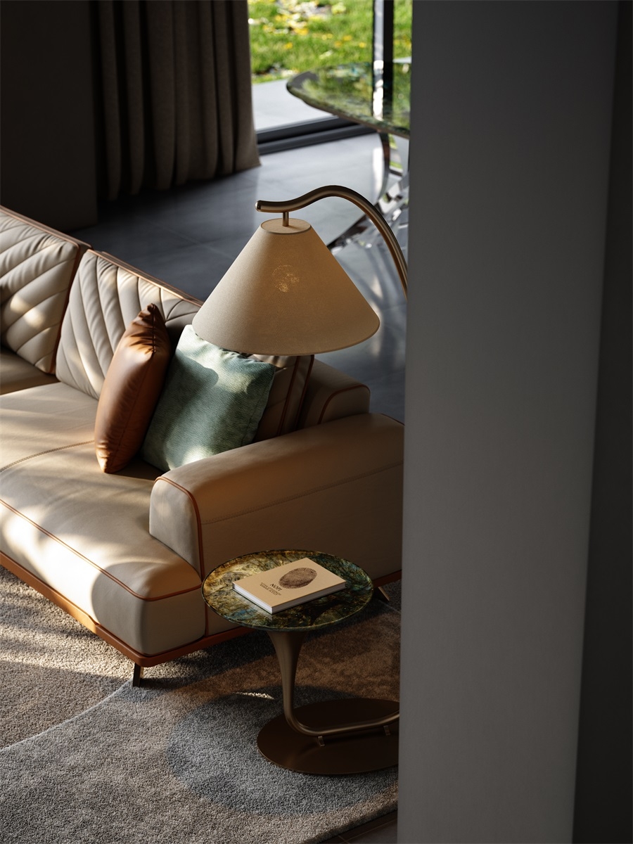Adding curved elements to the stiff metal contours indirectly enhances the overall elegance and architectural sense of the corners, showcasing a fashionable, simple, and neat beauty in the space.