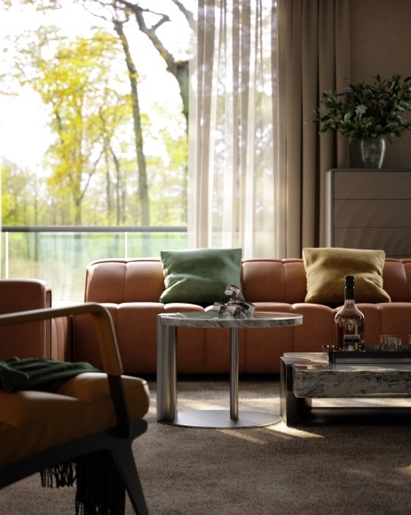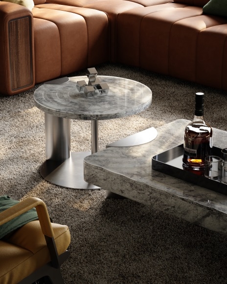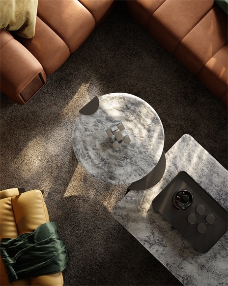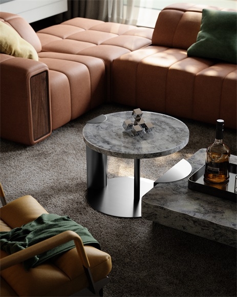 The design is unique, and the round shape of the panel and the base echo each other. Through the guidance of its semicircular legs and round legs, the coffee table looks lighter.