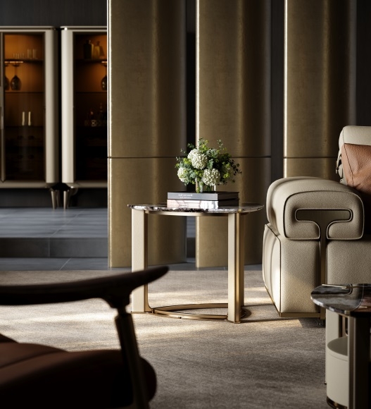 The iconic "丅" letter is combined with vertical and horizontal lines. The boundless plane dimension is like the trajectory of thinking, extending the profound imagination of the design, integrating the layered beauty and luxurious temperament, interpreting the infinite possibilities of design aesthetics and living space.