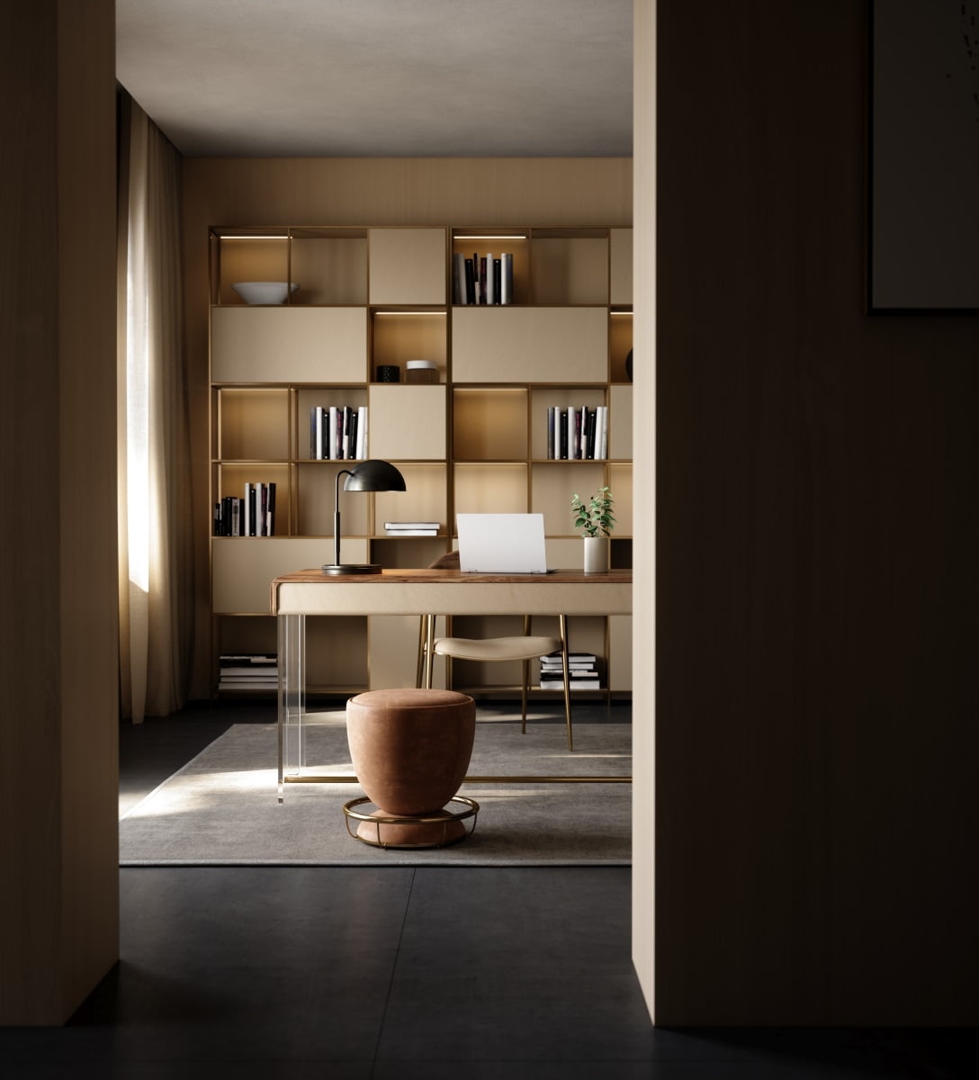 The desktop is made of natural rock slabs with a unique texture like an art painting. After fine grinding and anti-seepage treatment, it is wear-resistant, stain-resistant and has artistic appeal. The linen storage cabinet has a soft touch, and the metal legs outline neat lines. The combination of the three weaves a spatial artistic texture base, injecting an elegant atmosphere into the office area.