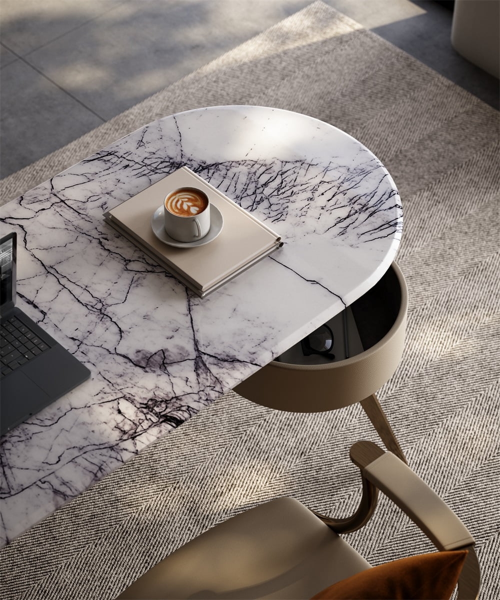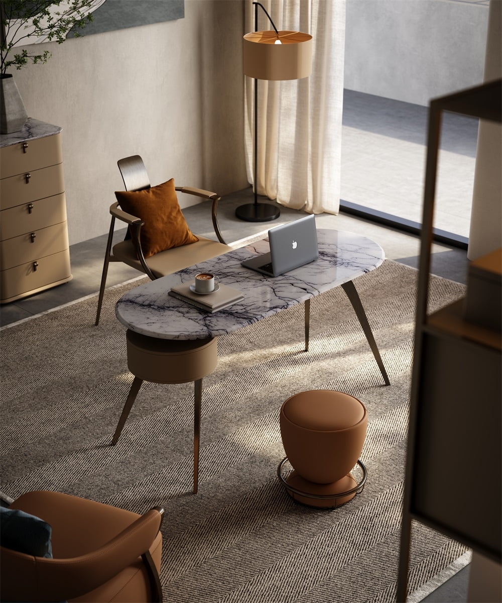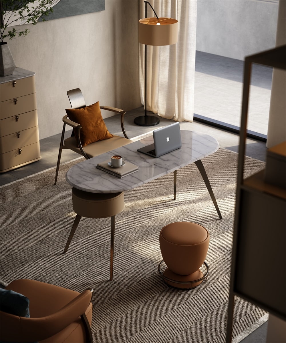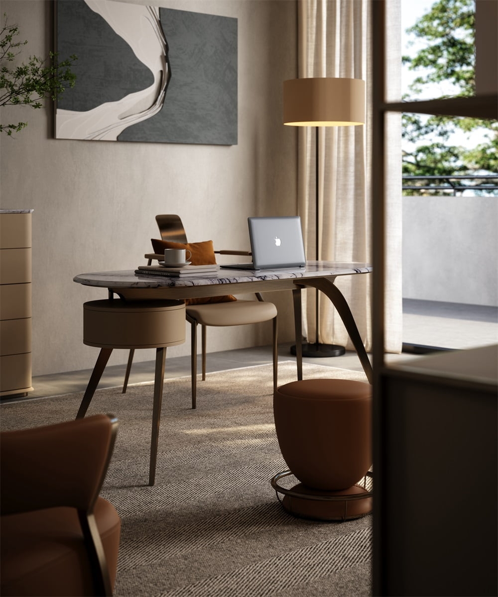 In a scene that focuses on office efficiency and space style, this desk combines solid wood, leather and metal materials, with a curved outline + multi-drawer storage design, becoming the "efficiency leader" of the office area, turning every work and reading into a pleasant experience blended with quality life.
