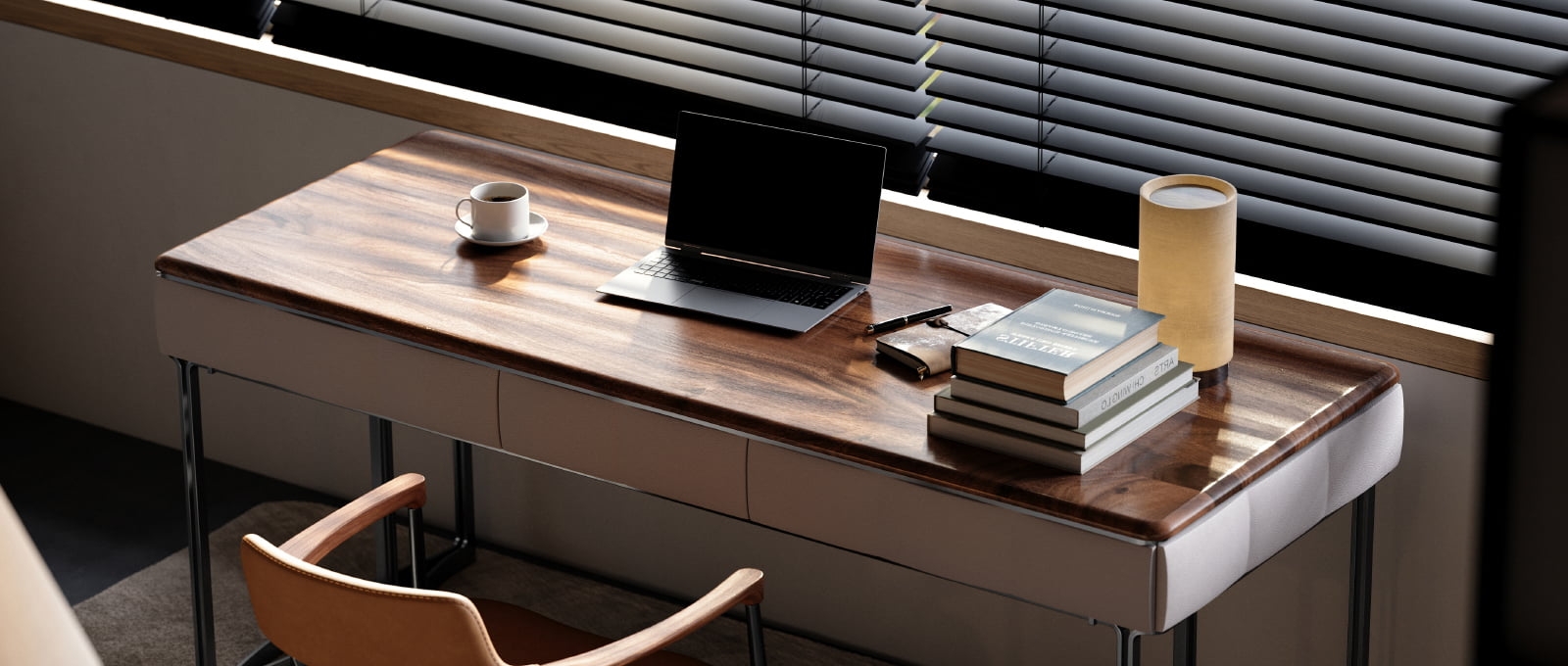 Luxury Stone & Upholstered Desk Modern Home Office Desk