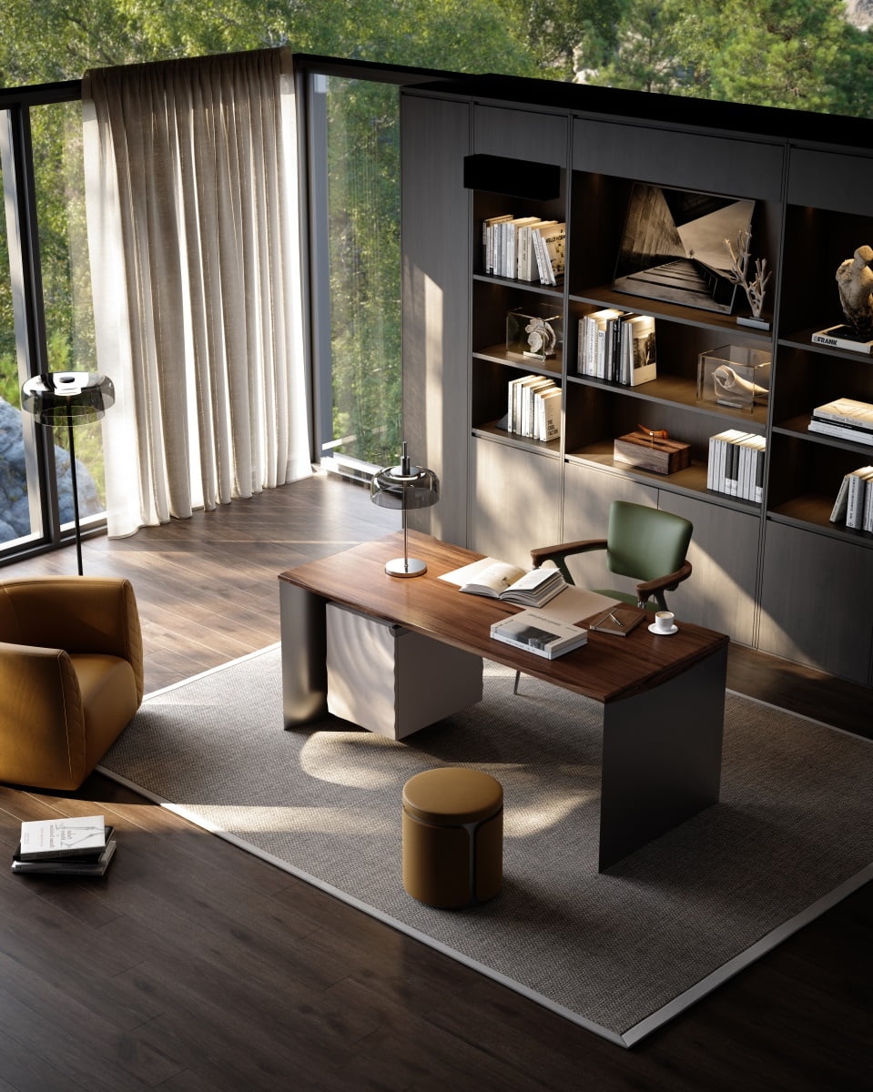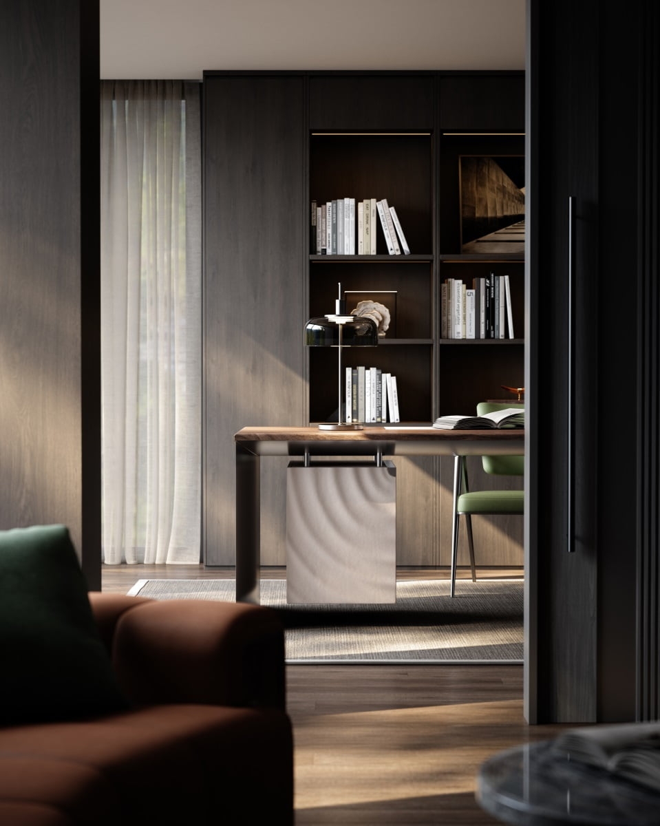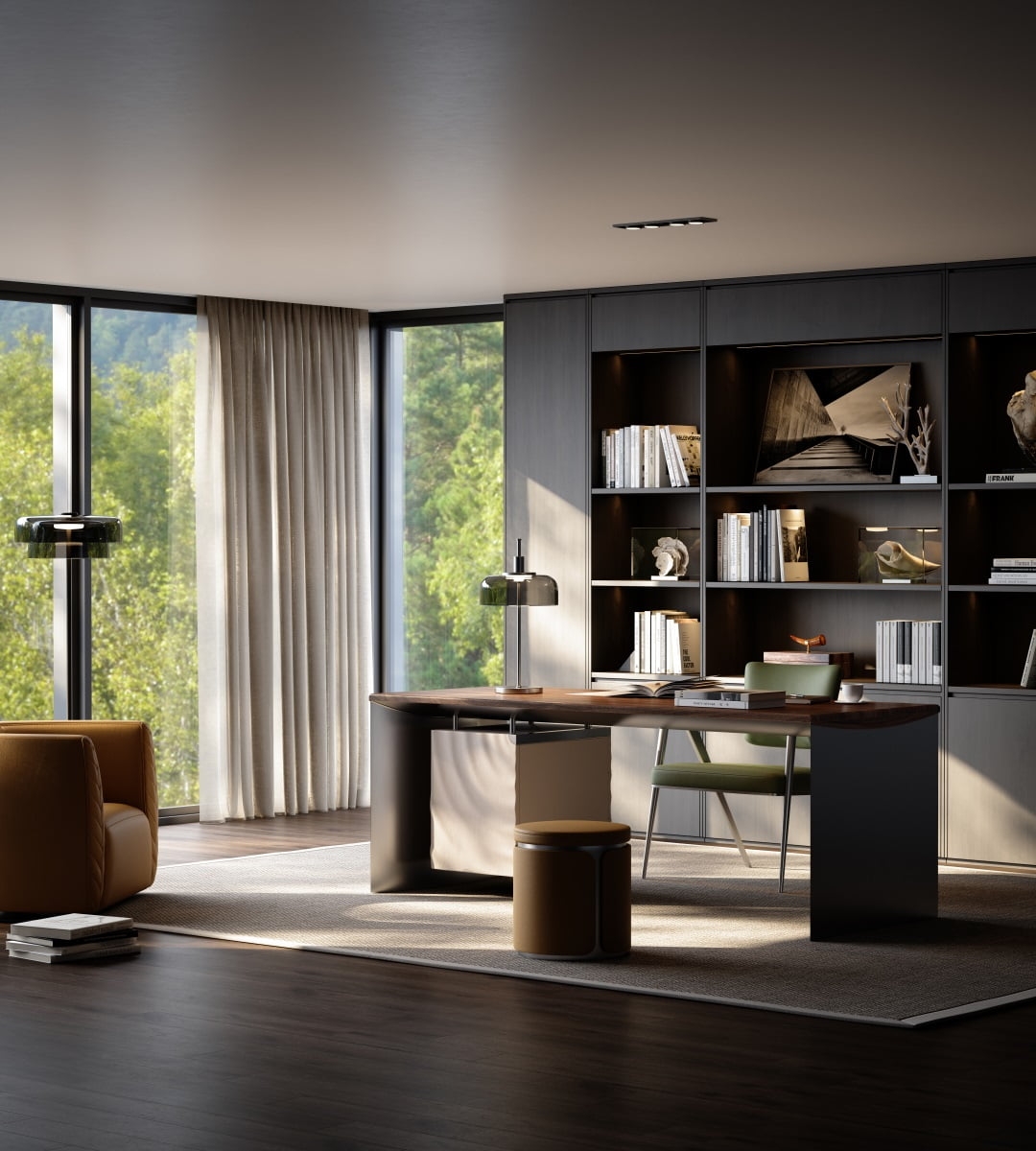 The bookcase is half suspended under the desk surface, and the cabinet surface ripples with layers of smart ripples. The arc is undulating, bringing a double enjoyment of vision and touch, adding tranquility and harmony to the study environment.