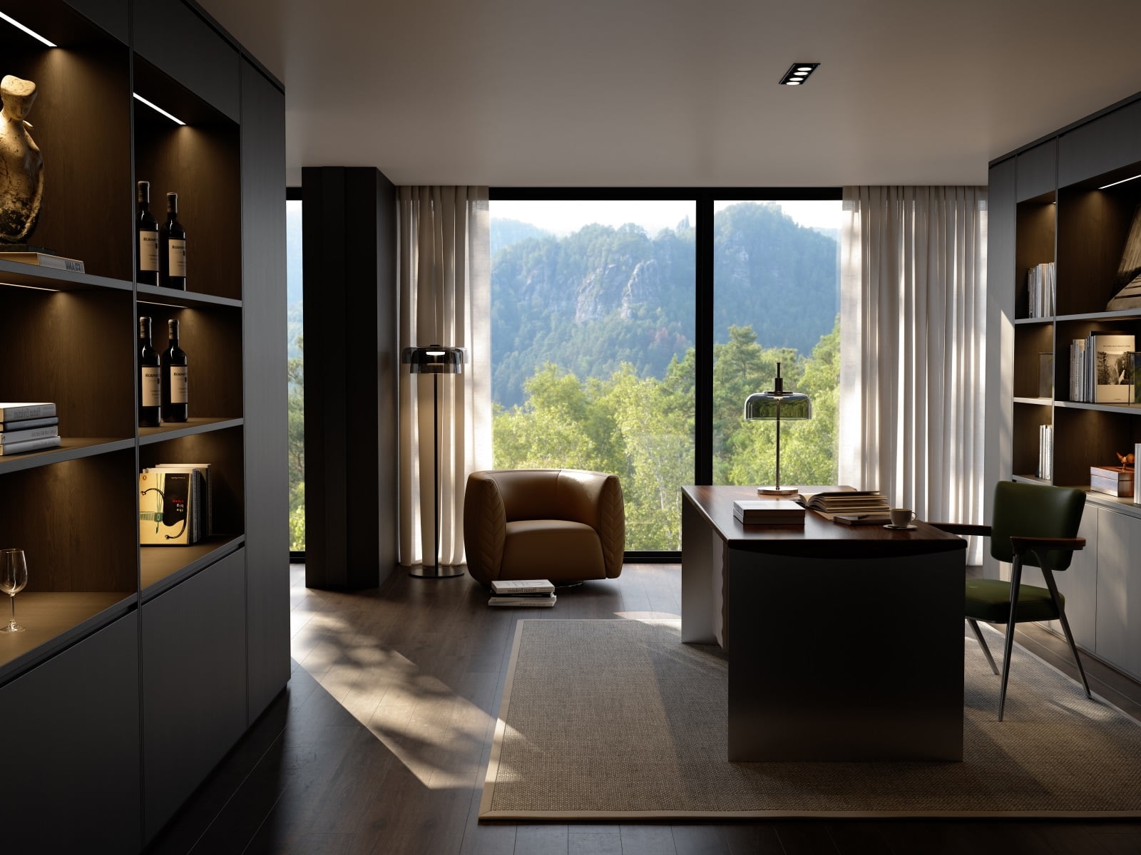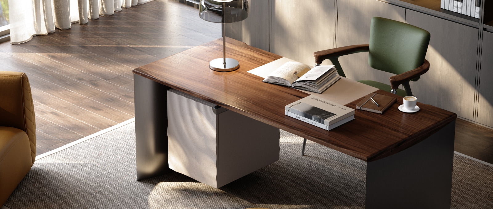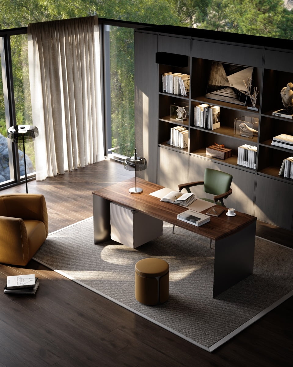 The bookcase is half suspended under the desk surface, and the cabinet surface ripples with layers of smart ripples. The arc is undulating, bringing a double enjoyment of vision and touch, adding tranquility and harmony to the study environment.