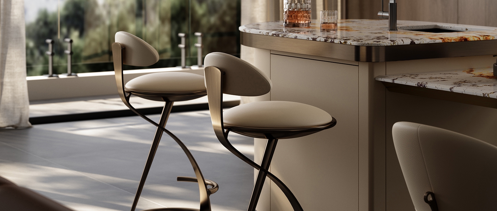 Modern Beige Leather Bar Stool