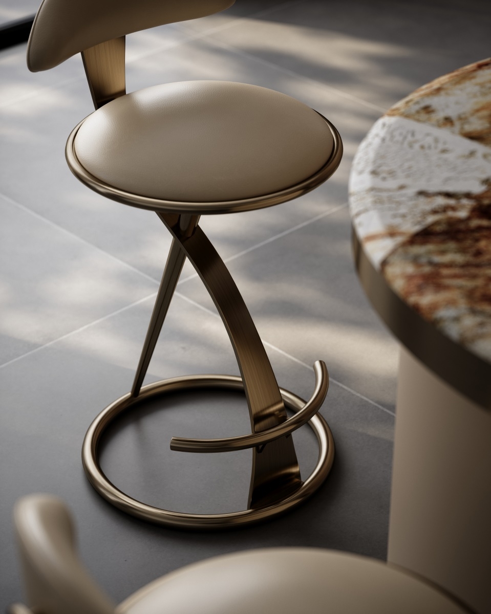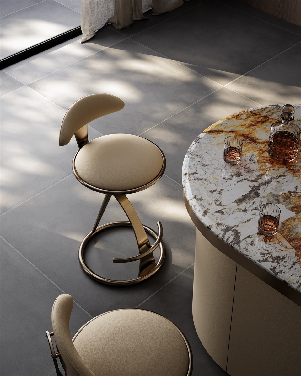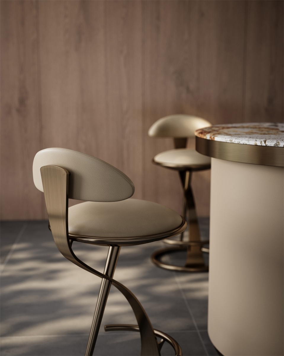The combination of the S-shaped metal bracket and the rounded seat back breaks the conventional form and injects artistic vitality into the space; the ergonomic curve fits the body curve and provides comfortable support; the ring base with footrest not only ensures stability but also adds design interest, allowing seating to move from "making do" to "immersive experience".