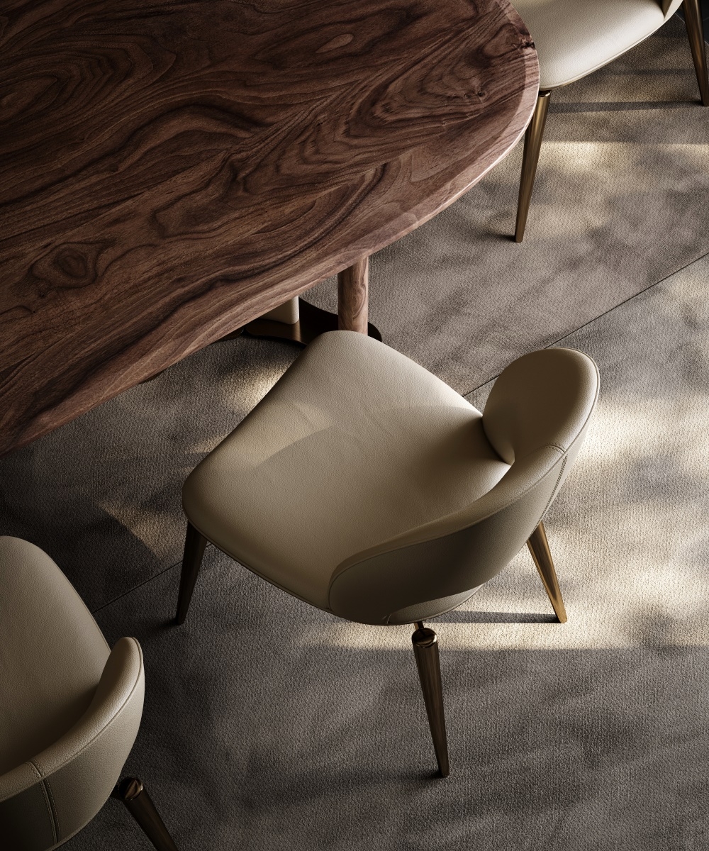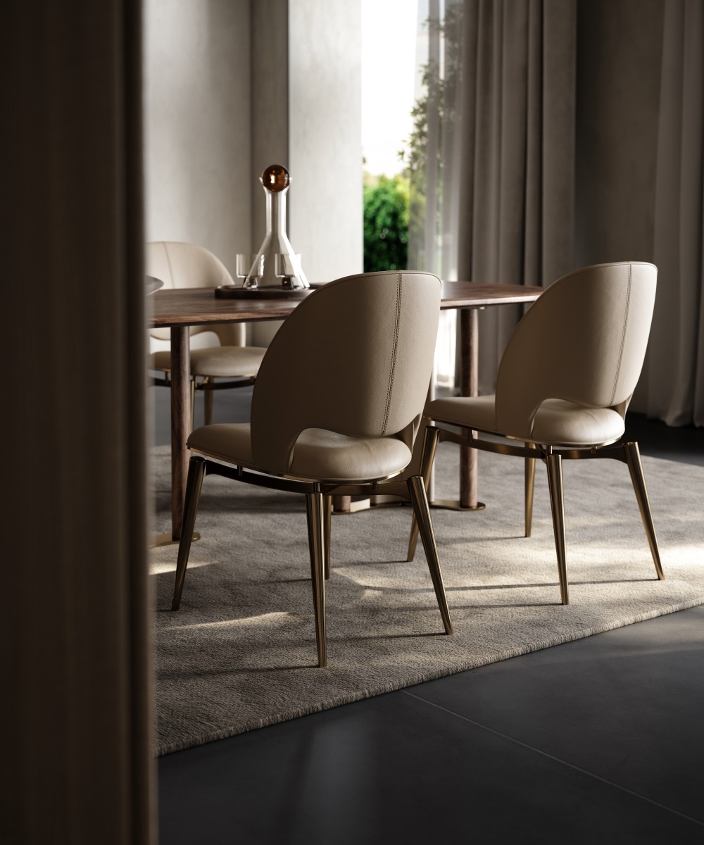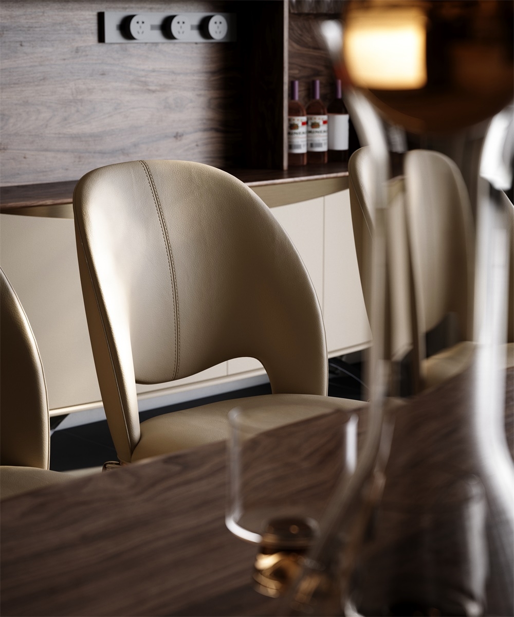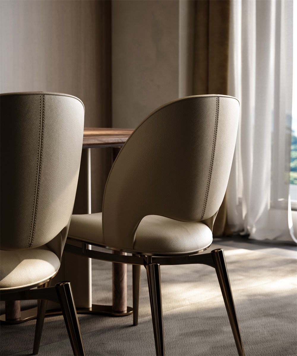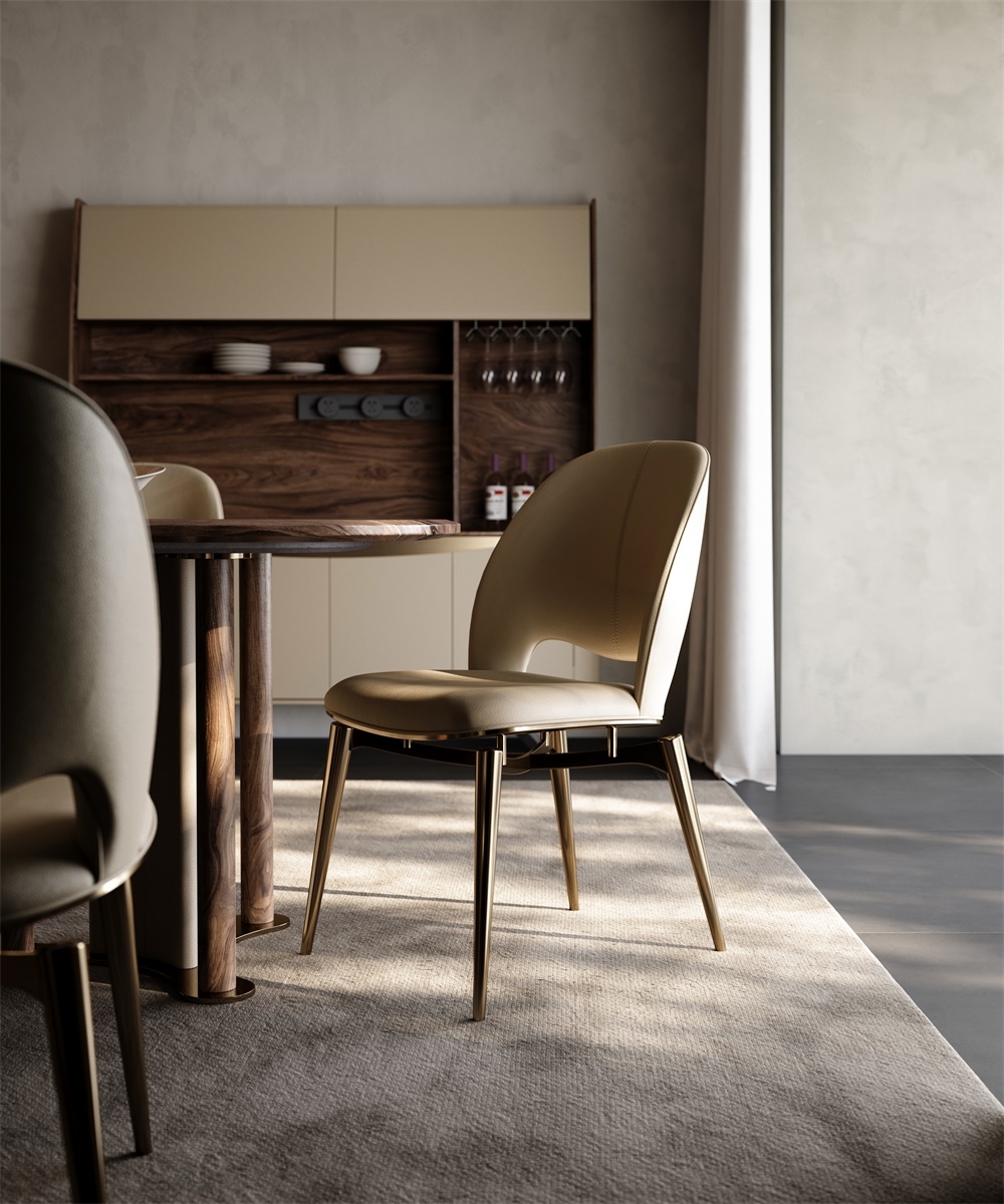The unique curved backrest is designed according to the curve of the human back, which can provide good support and effectively relieve the fatigue caused by long-term meals; the seat is filled with high-elastic sponge, which is soft and has good resilience, and the wide seat design meets the needs of different body shapes; the tapered metal legs not only enhance the stability of the chair, but also create a sense of lightness visually, achieving a perfect combination of comfort and beauty.