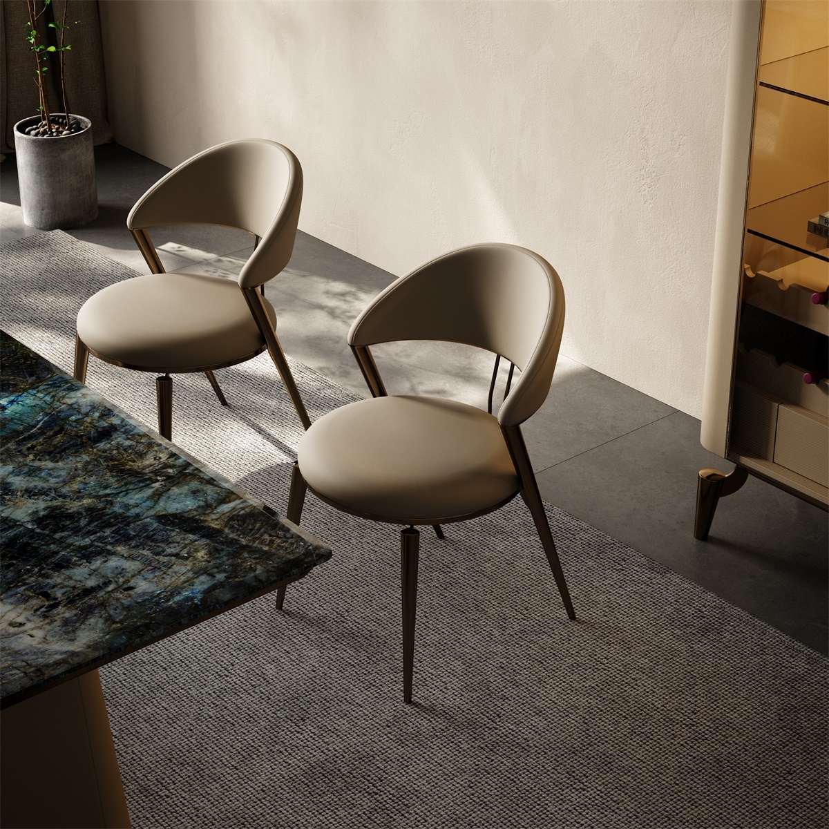Curved - Back Leather Dining Chair Elegant Modern Dining Chair