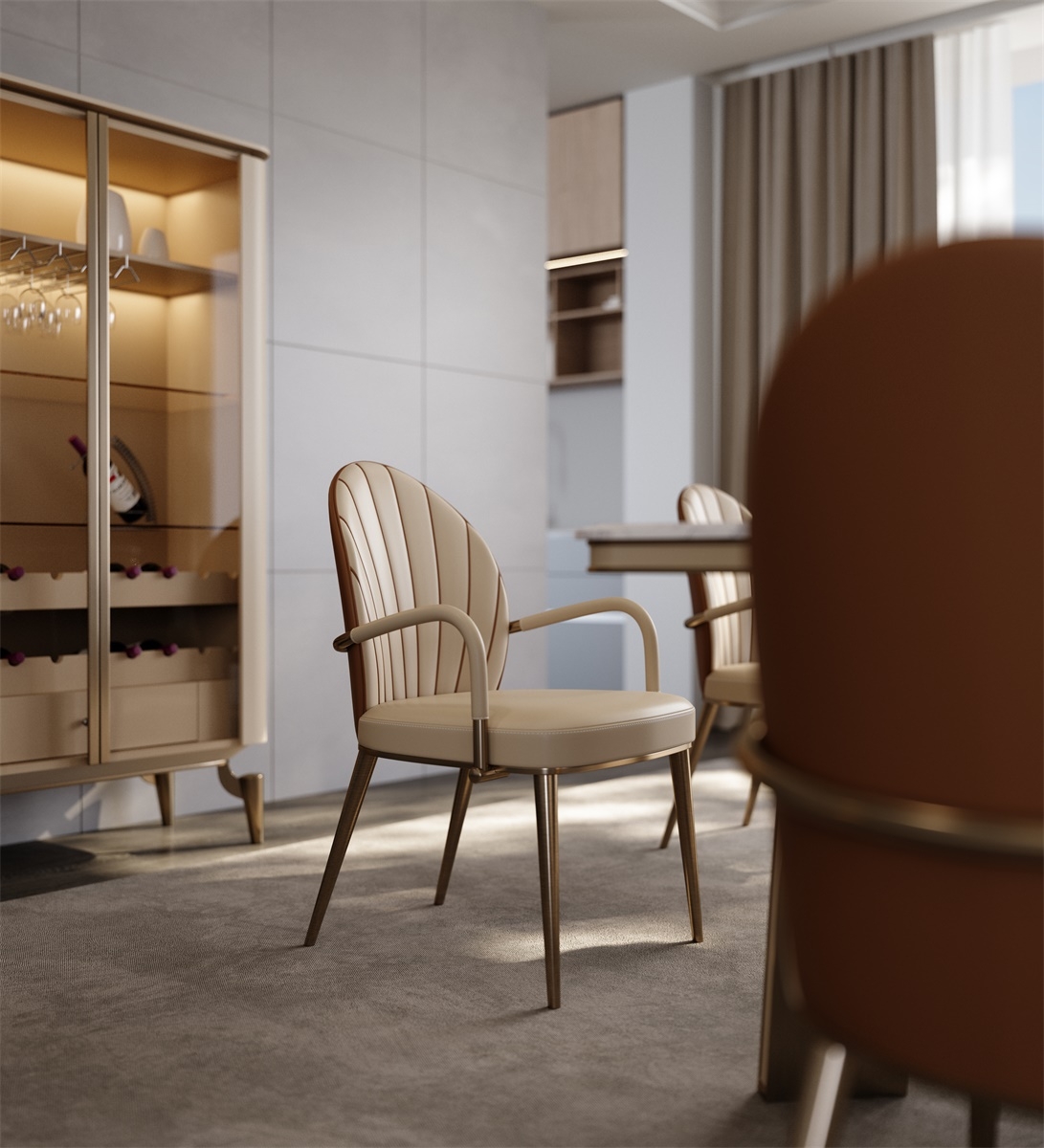 It is not only an elegant dining option in the restaurant, enhancing the sense of ritual of dining; it can also be placed in the study room and leisure area as a comfortable resting seat. It is suitable for a variety of home styles such as modern light luxury, Italian minimalism, Nordic style, etc., easily adding a unique charm to the space, so that different scenes can exude a different warm atmosphere.