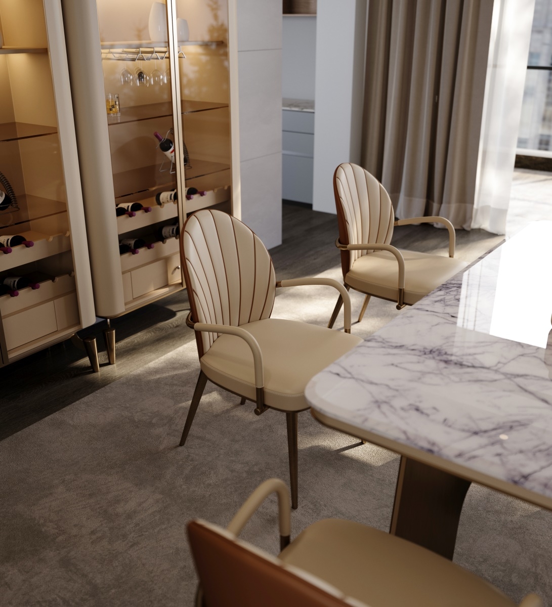 The fan-shaped backrest is full of three-dimensional sense, and the agility and luxury in the details touch warmth, reflecting on life amidst busyness.