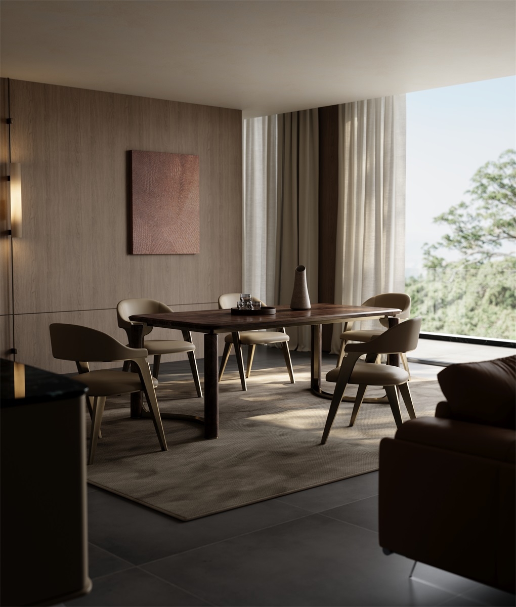 The solid wood joints are hand-polished and painted with wood wax oil, so the gaps are naturally hidden and the texture is continuous and uniform; the joints between the metal legs and the solid wood are laser-welded and hand-polished, smooth and burr-free, and the welding points are invisible and traceless; the art ornaments are matched with the countertops and are hand-adjusted, with harmonious blending of colors and shapes, integrating "exquisite detailism" into every minimalist structure.