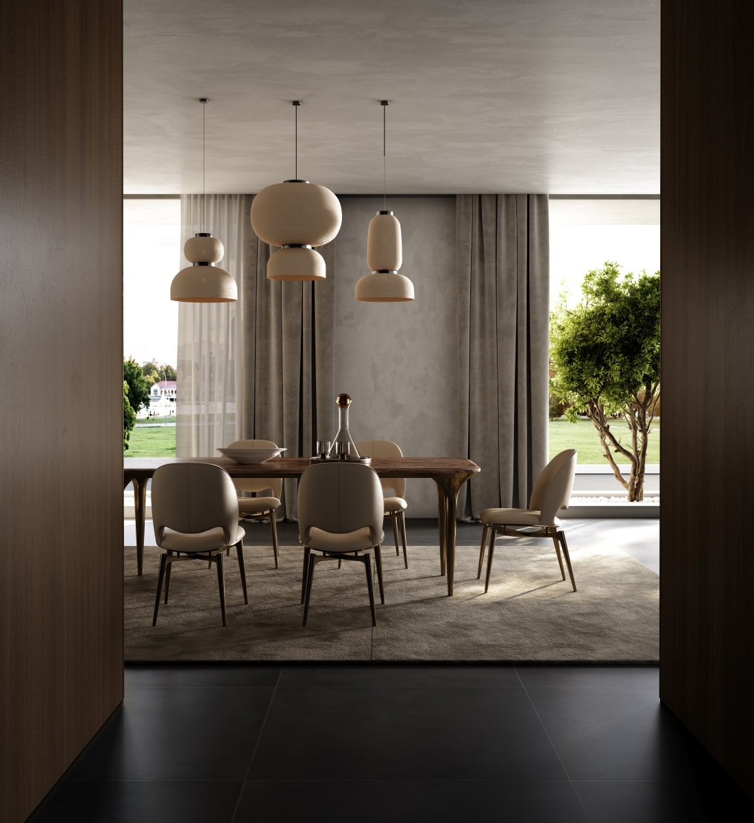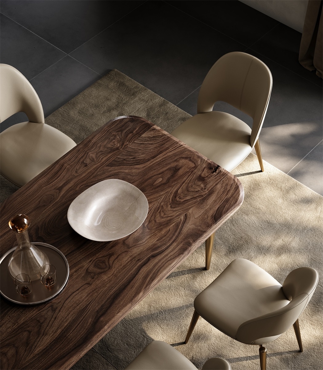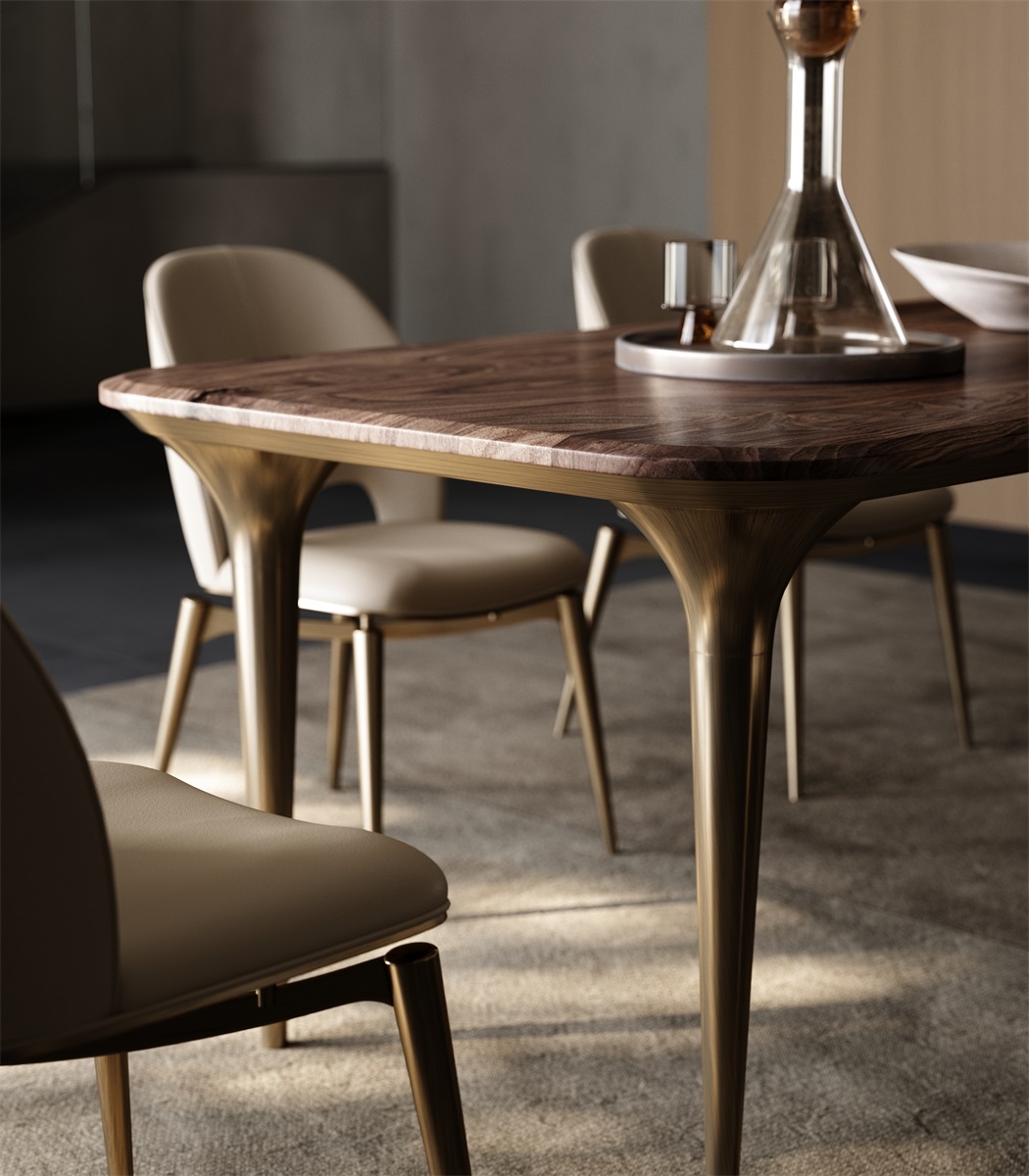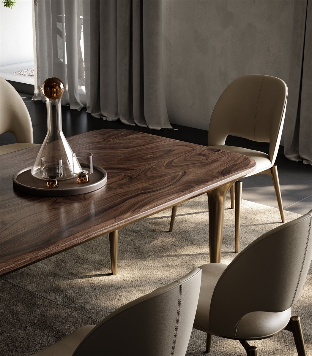The tabletop is made of solid wood with a unique texture like a natural art painting. It is hand-polished and anti-corrosive treated, making it warm, simple and durable. The base is made of metal, and the streamlined leg design outlines the smart lines, matched with the exquisite embellishment of art ornaments.