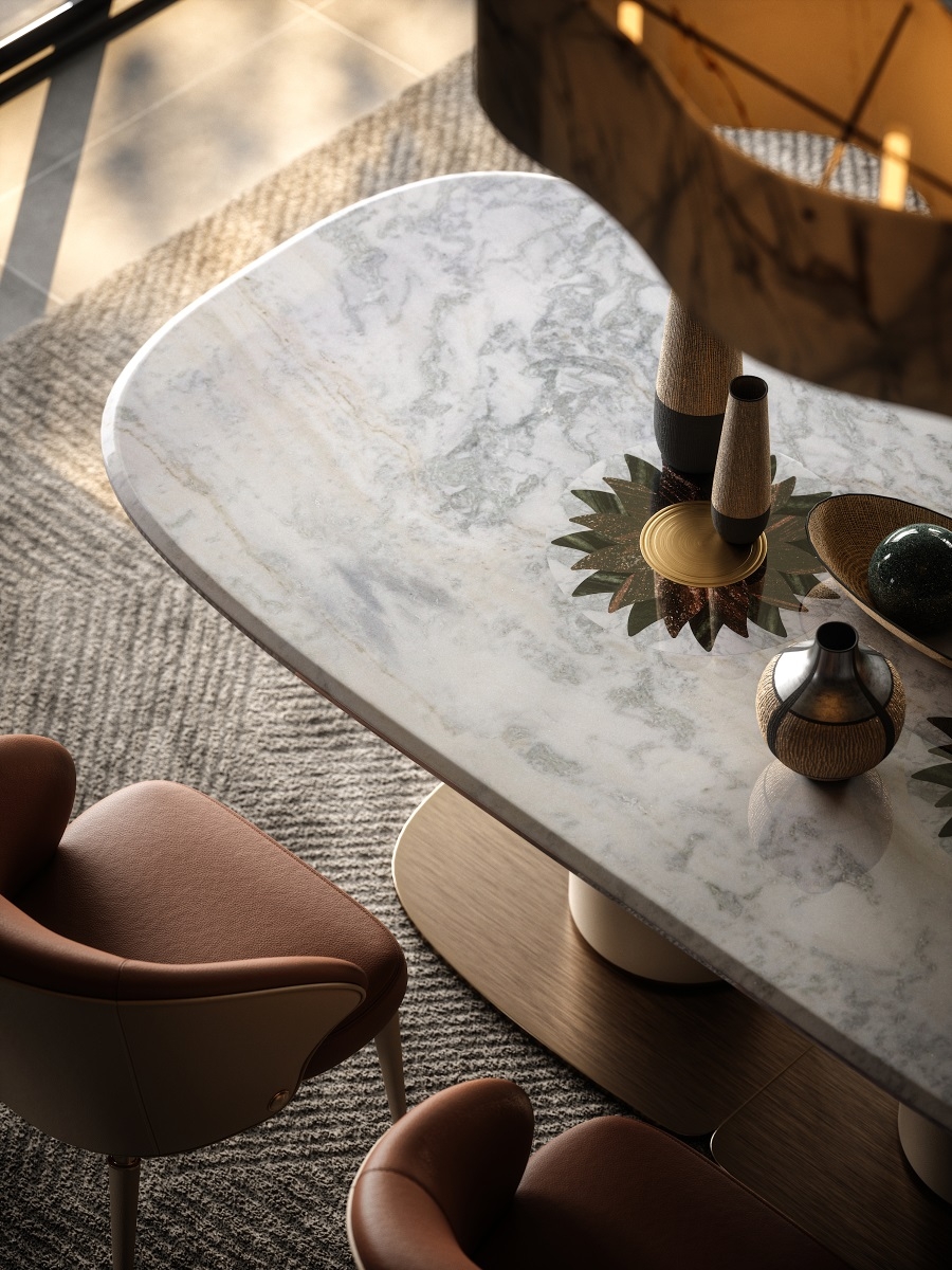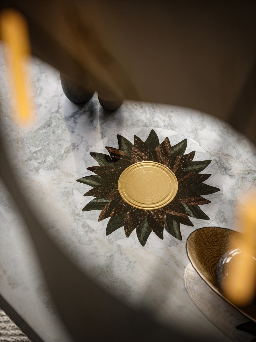 artistic blossoms utilizes light, shadow, and the hues of natural luxury stone to depict the elegant
