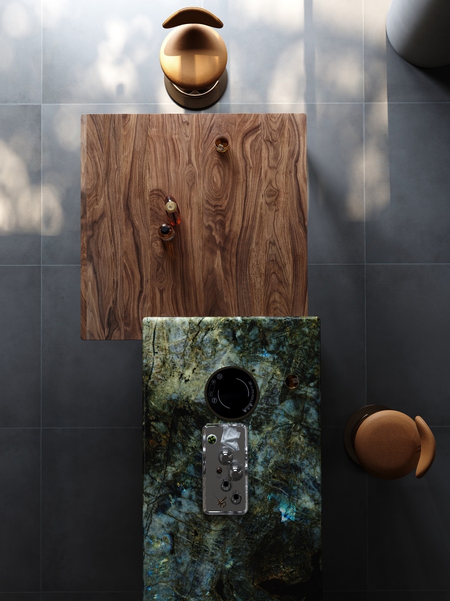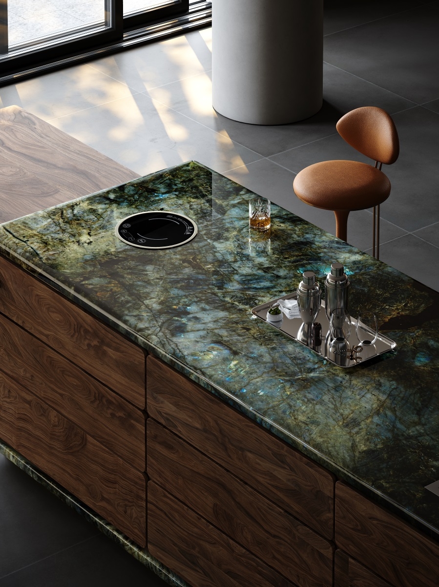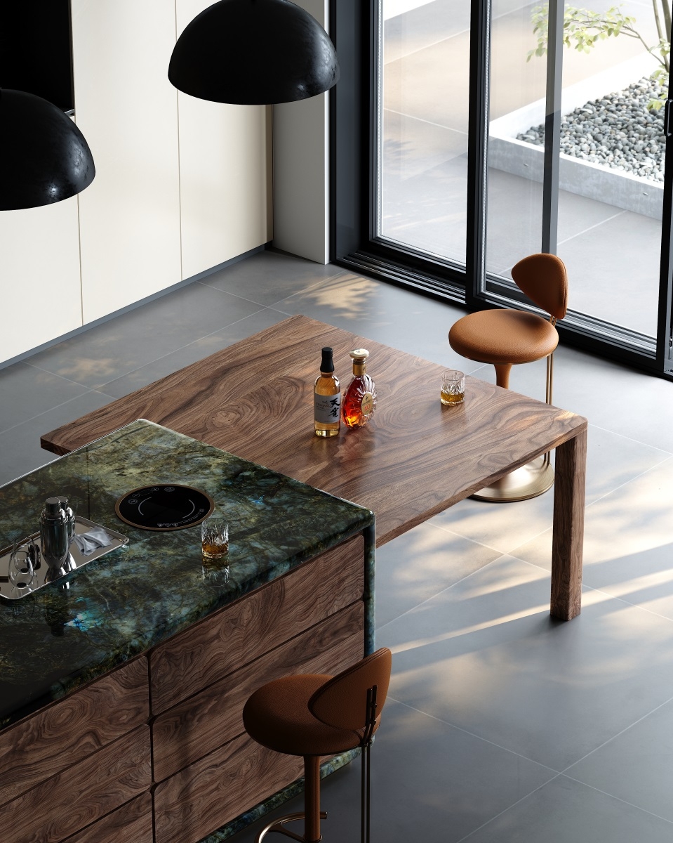Tabletop: Natural stone+North American walnut