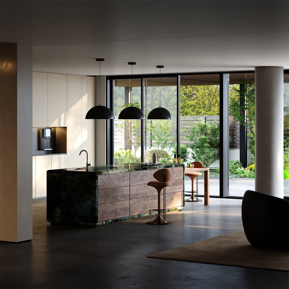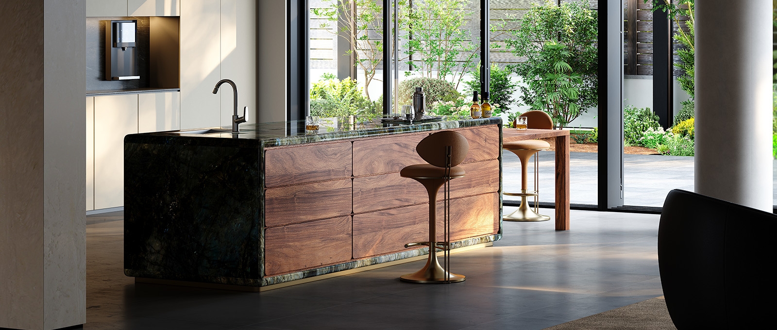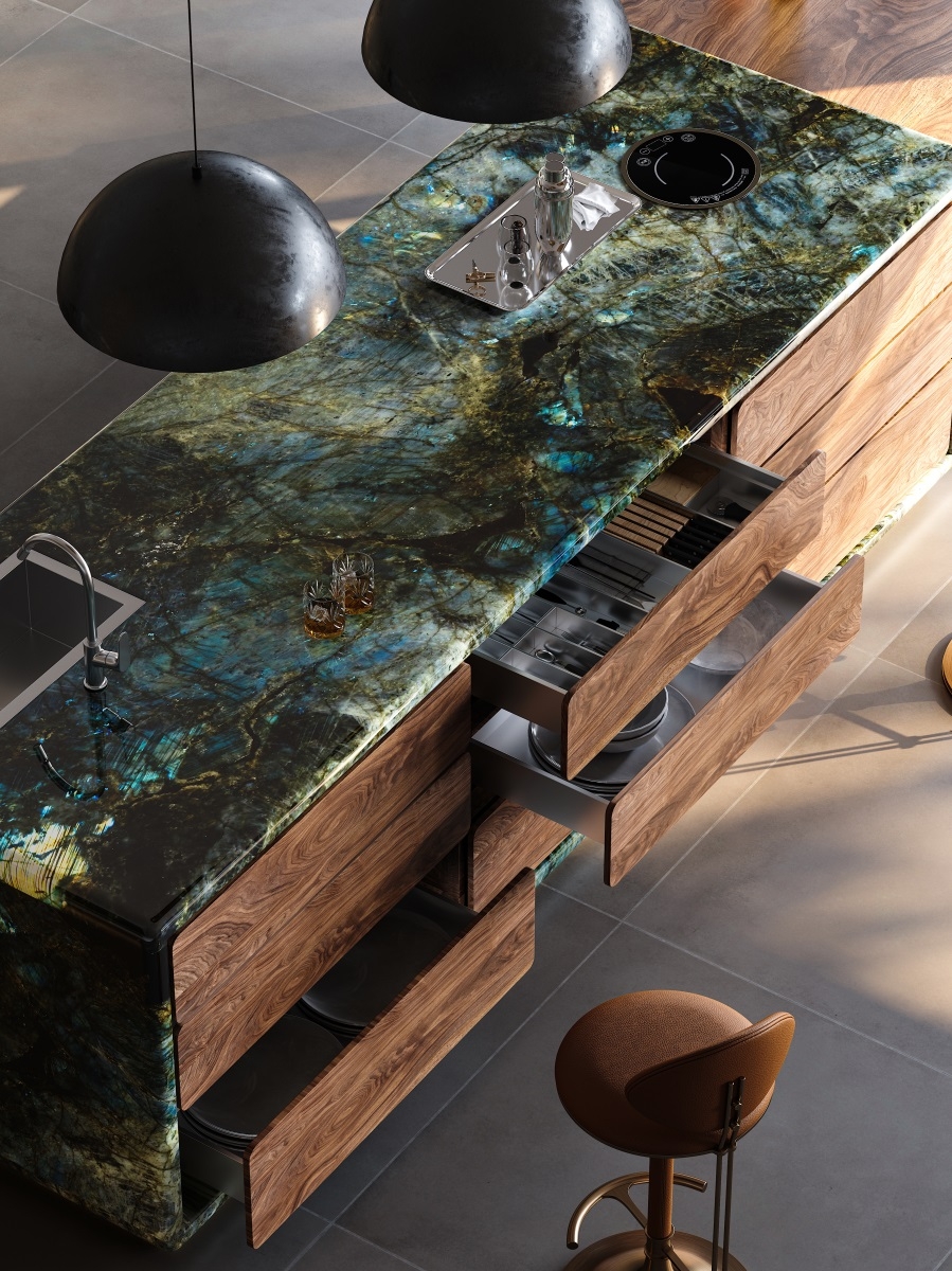Tabletop: Natural stone+North American walnut