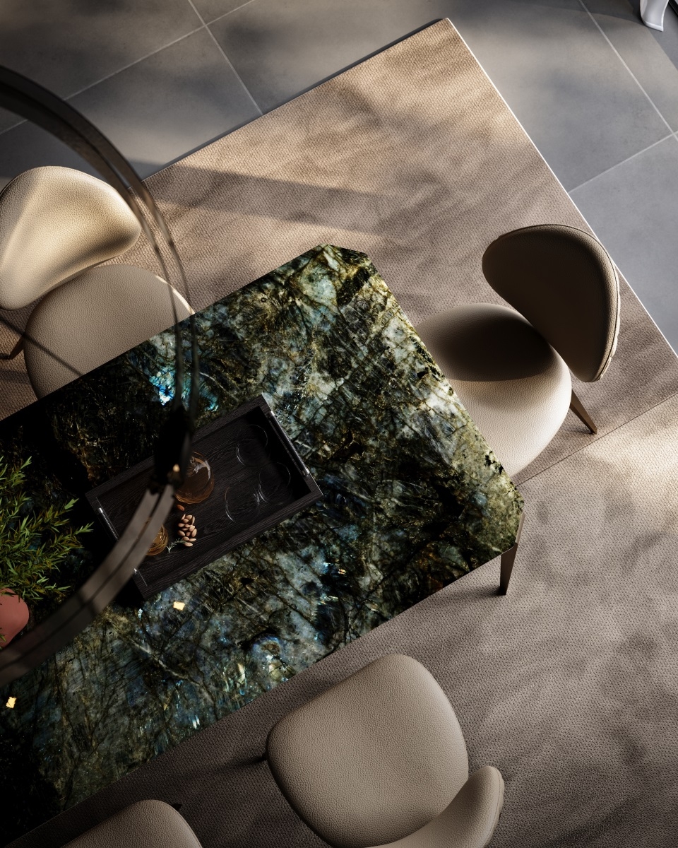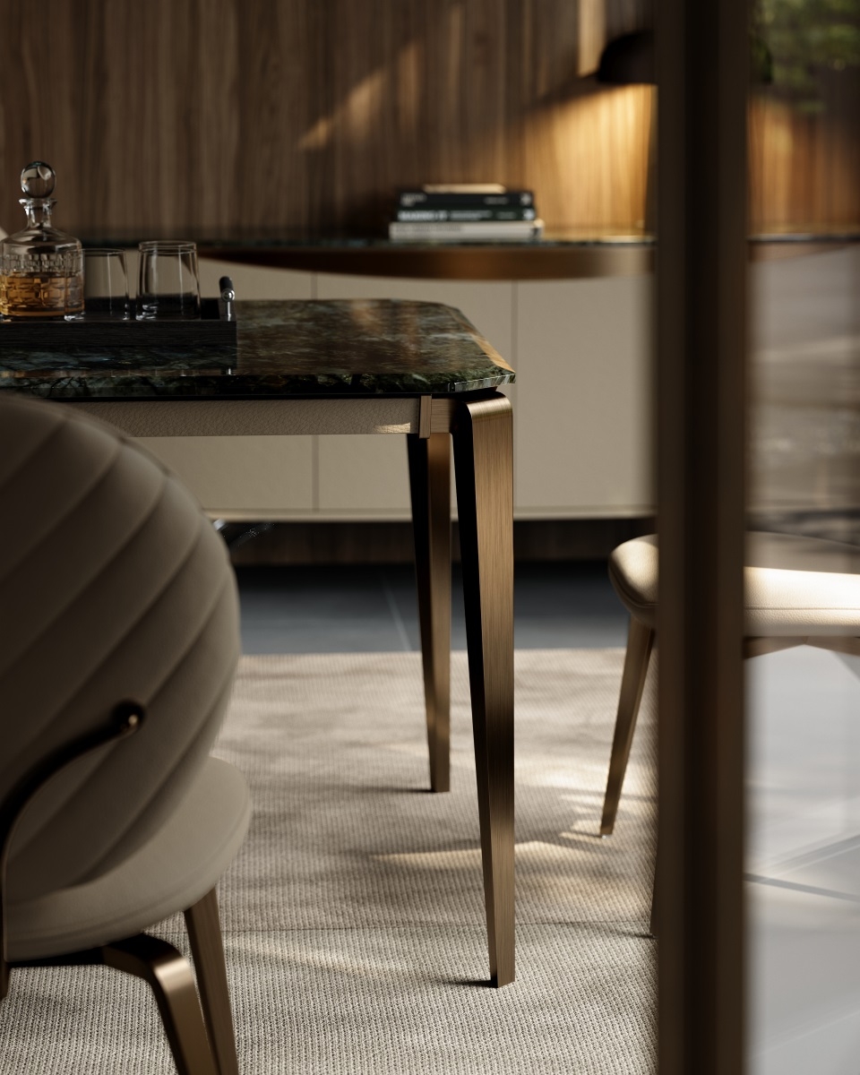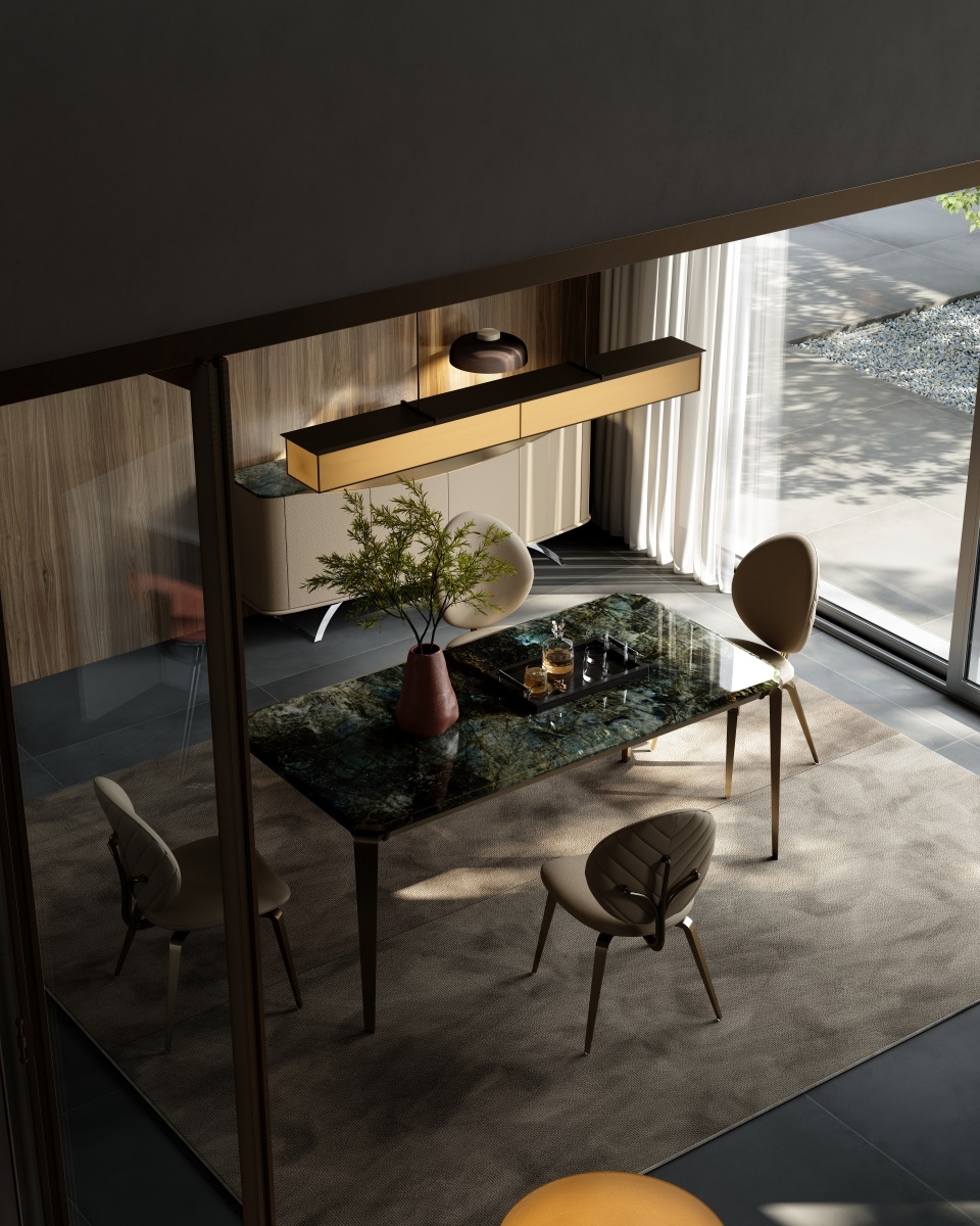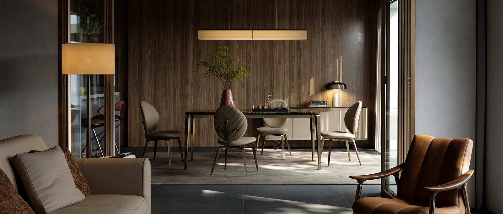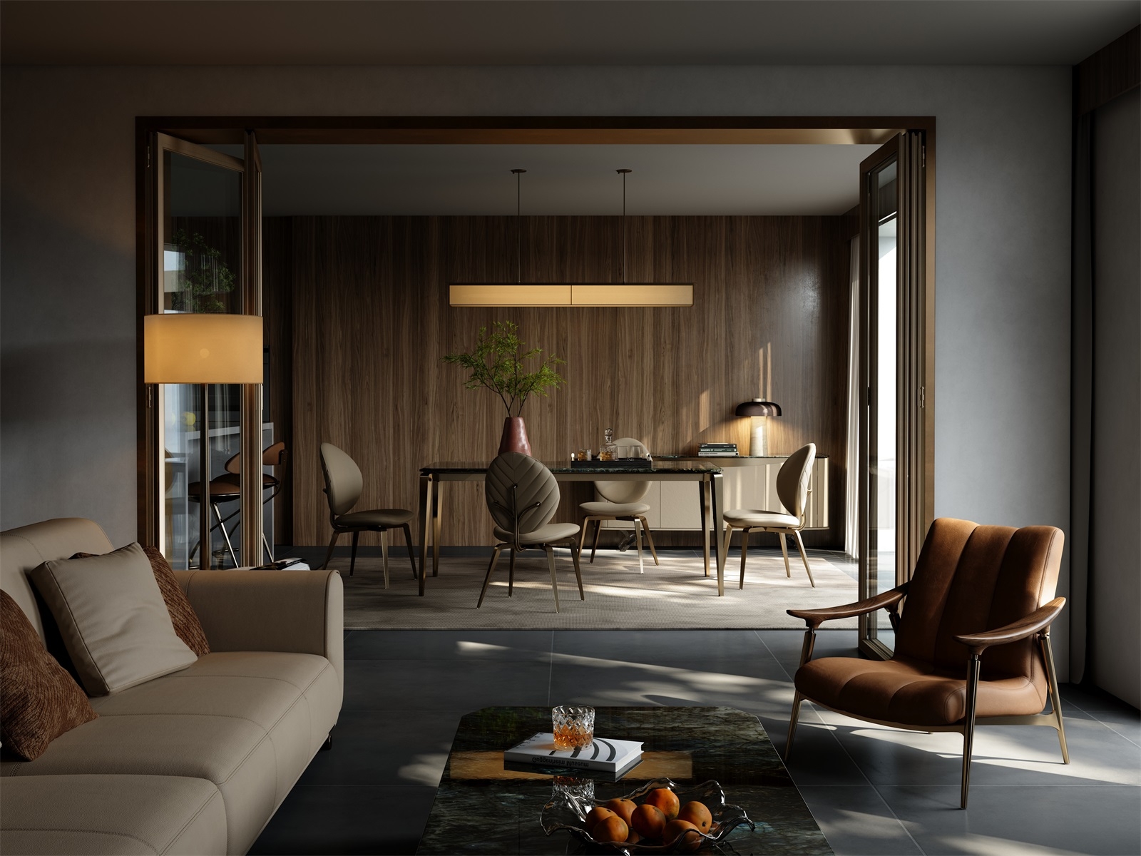 In a space that focuses on creating a social atmosphere at home and meeting practical dining needs, this dining table combines rock slabs, leather, and metal materials with minimalist design, becoming the "social core" of the restaurant and living room, turning every meal and gathering into a pleasant experience blended with quality life.