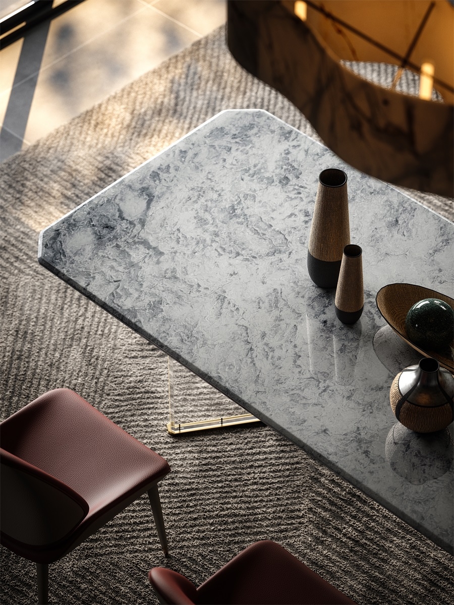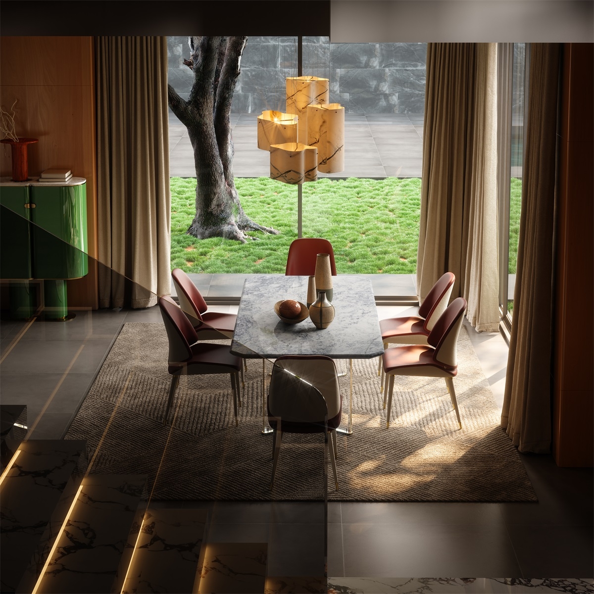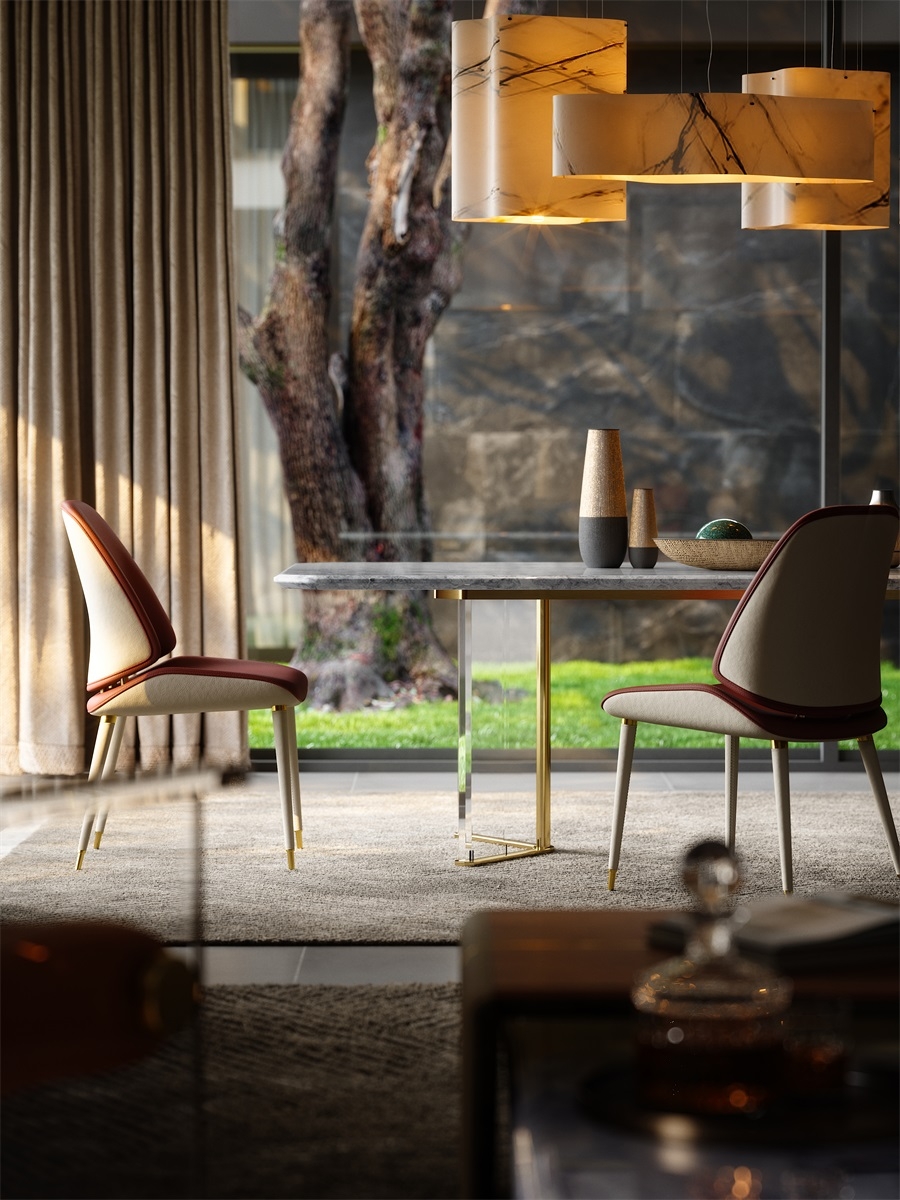 of natural luxury stone, warm solid wood, and light luxury metal. It recreates the serenity and healing