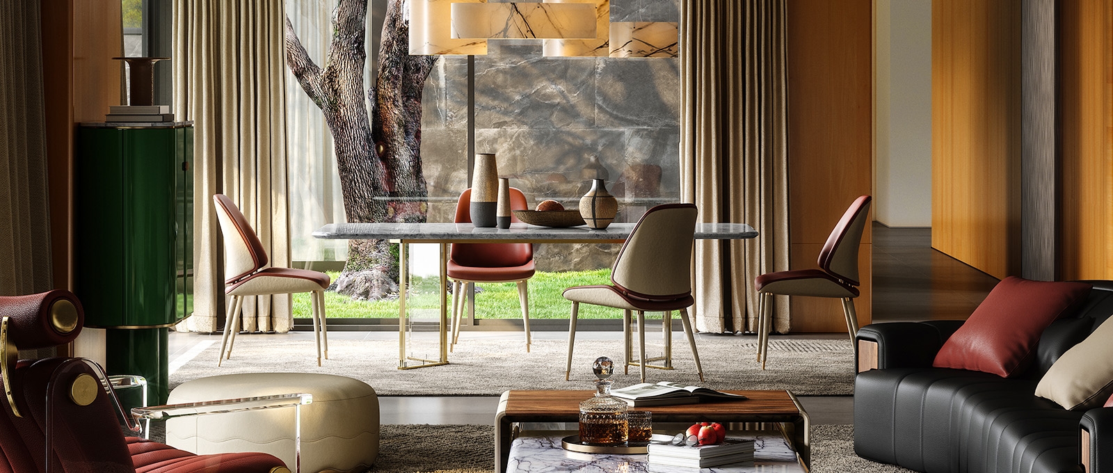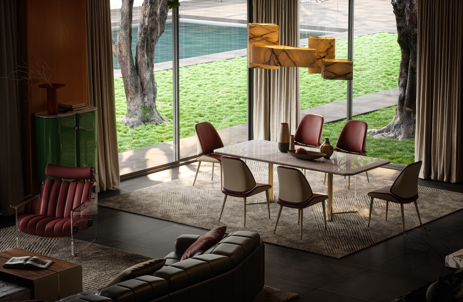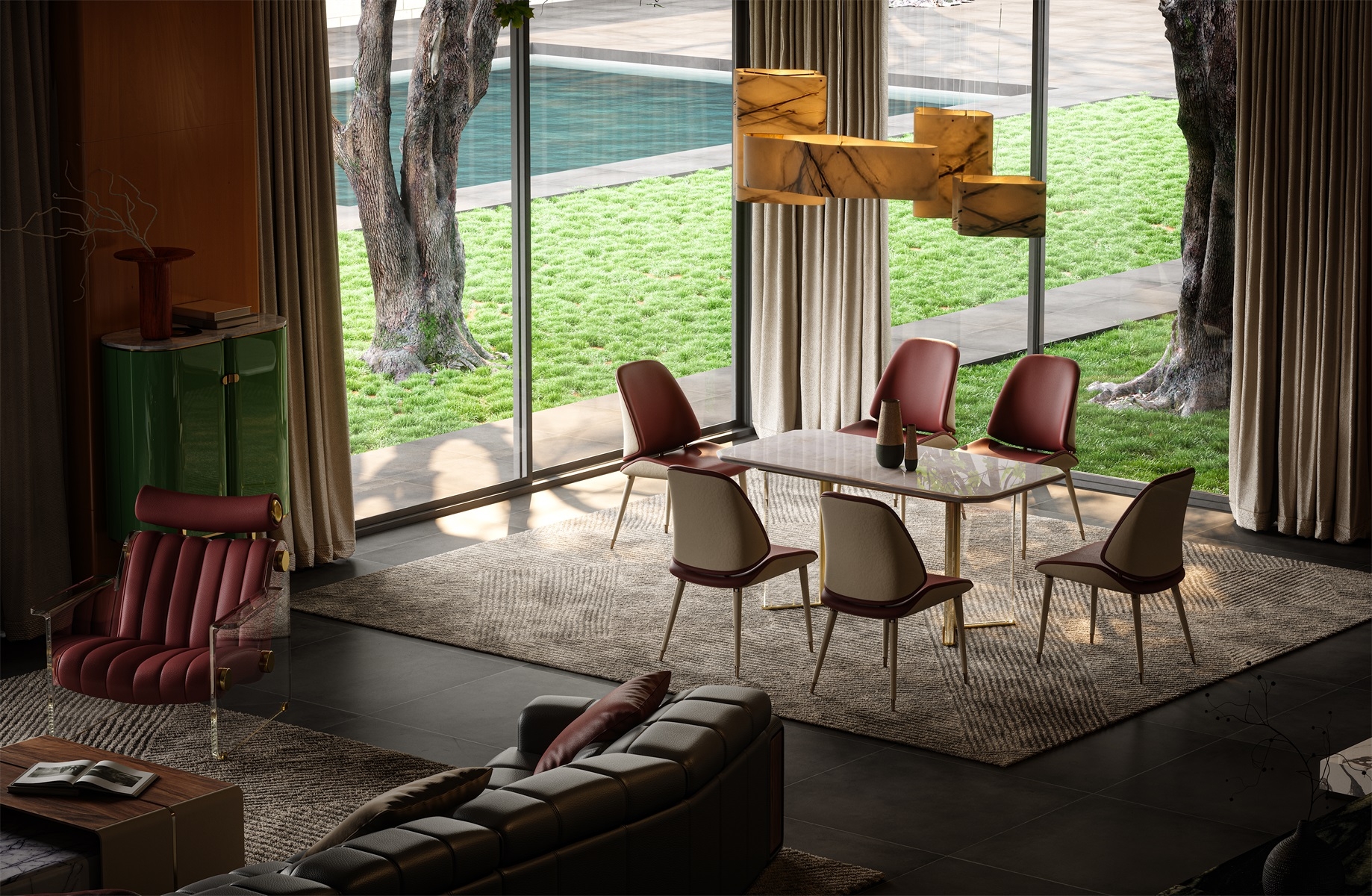 of natural luxury stone, warm solid wood, and light luxury metal. It recreates the serenity and healing