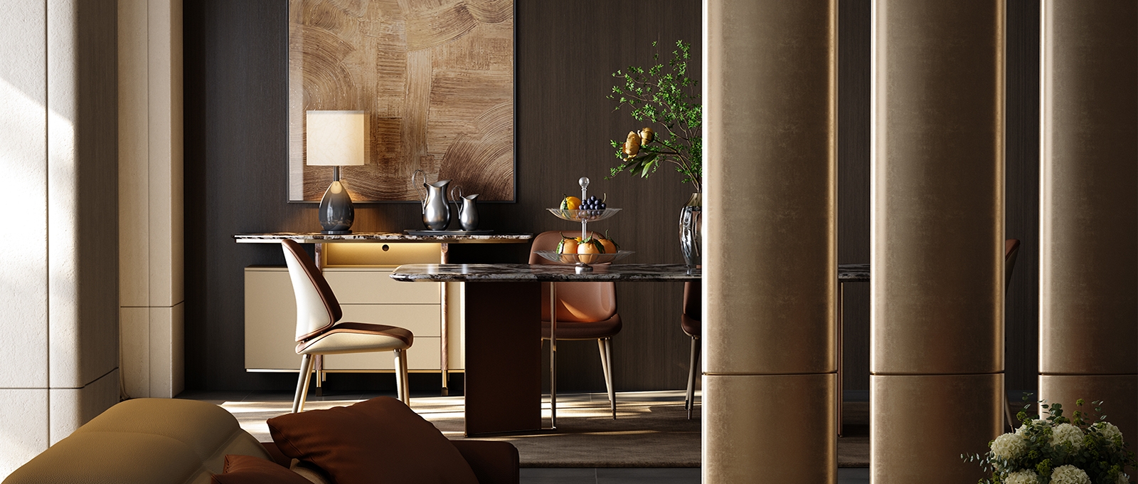 It is the "social interaction center" of the restaurant, suitable for family gatherings, friends' banquets, and multiple dining scenes; it is also the "aesthetic display stand" of the living room, with art ornaments and green plants to create an immersive social atmosphere. It is suitable for modern art, Italian light luxury, new Chinese style and other styles, helping the space to advance from a "dining area" to a "high-end social art venue".