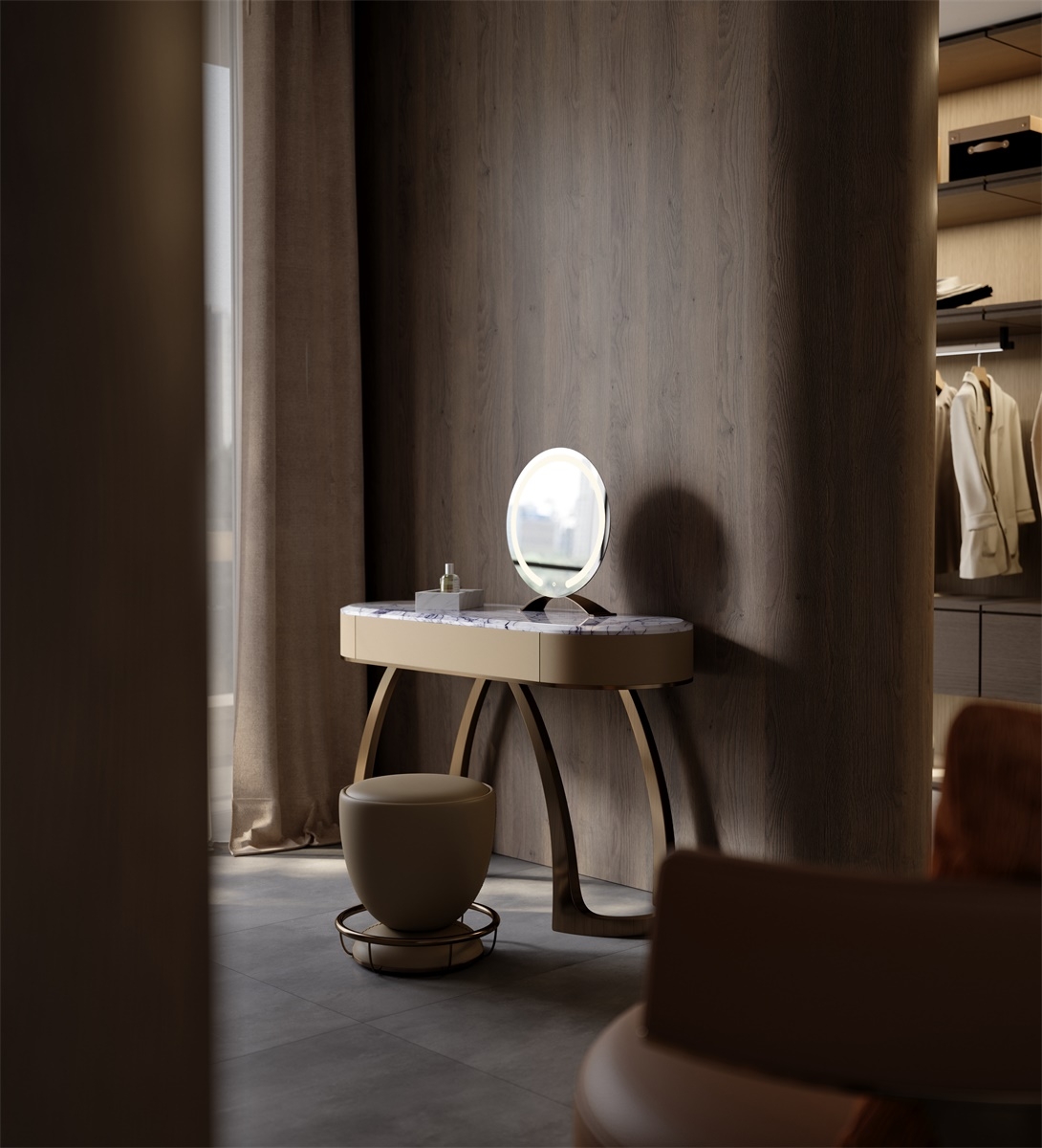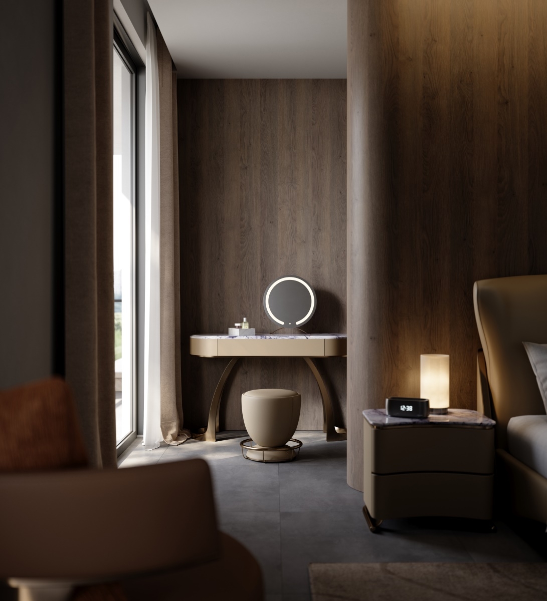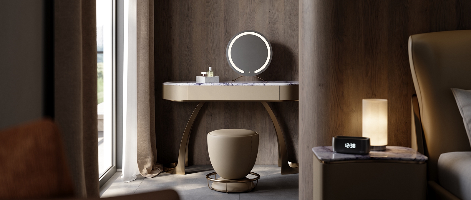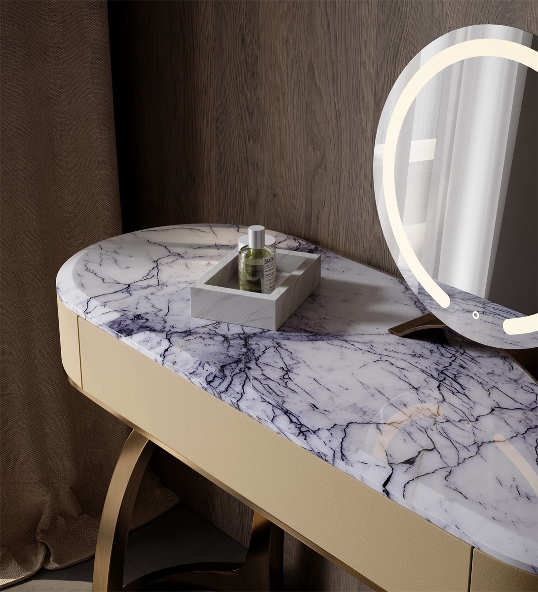 It is the "beauty and order housekeeper" of the bedroom, helping to classify and put away small items for a refined look; it is also a "healing resting table", with aromatherapy and green plants, creating an immersive skin care atmosphere. It is suitable for modern light luxury, Italian simplicity, new Chinese style and other styles, helping the space to advance from a "sleeping area" to a "refined beauty art field".