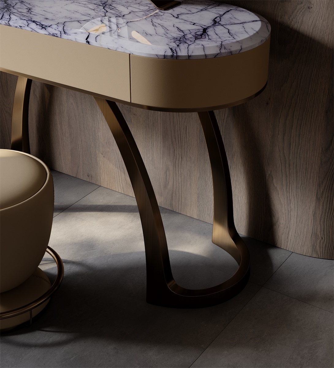 The curved arch structure is visually attractive, and the smooth curves add elegance and dynamism, evenly dispersing the weight of the makeup stand and ensuring stability during use. At the same time, the legs can be flexibly placed without restrictions.