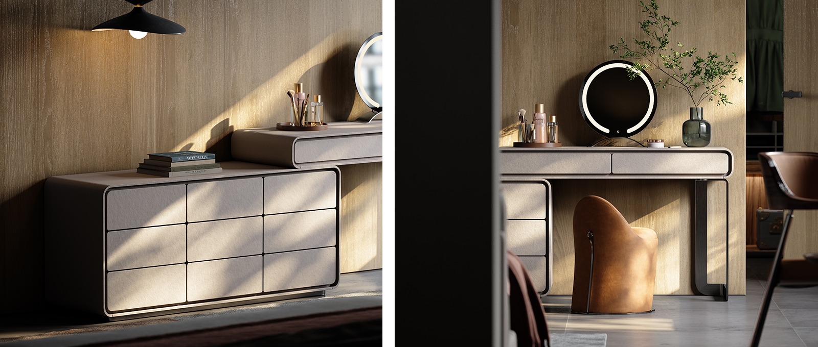 It is the "beauty and order housekeeper" of the bedroom, helping to classify and put away small items for a refined look; it is also a "healing resting table", with aromatherapy and green plants, creating an immersive skin care atmosphere. It is suitable for modern simplicity, Nordic style, Wabi-sabi style and other styles, helping the space to advance from a "sleeping area" to a "refined beauty area".