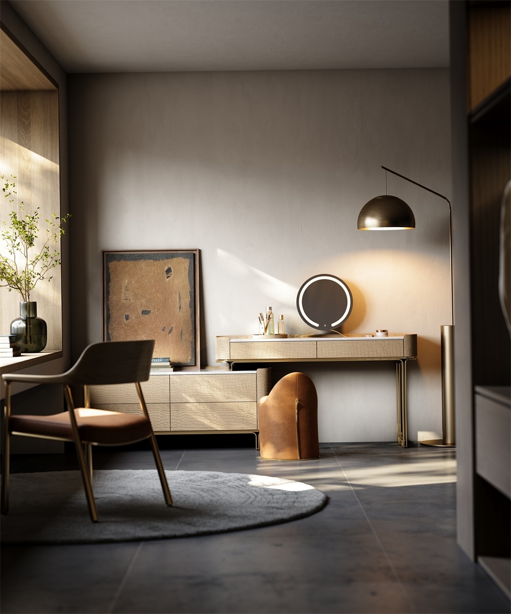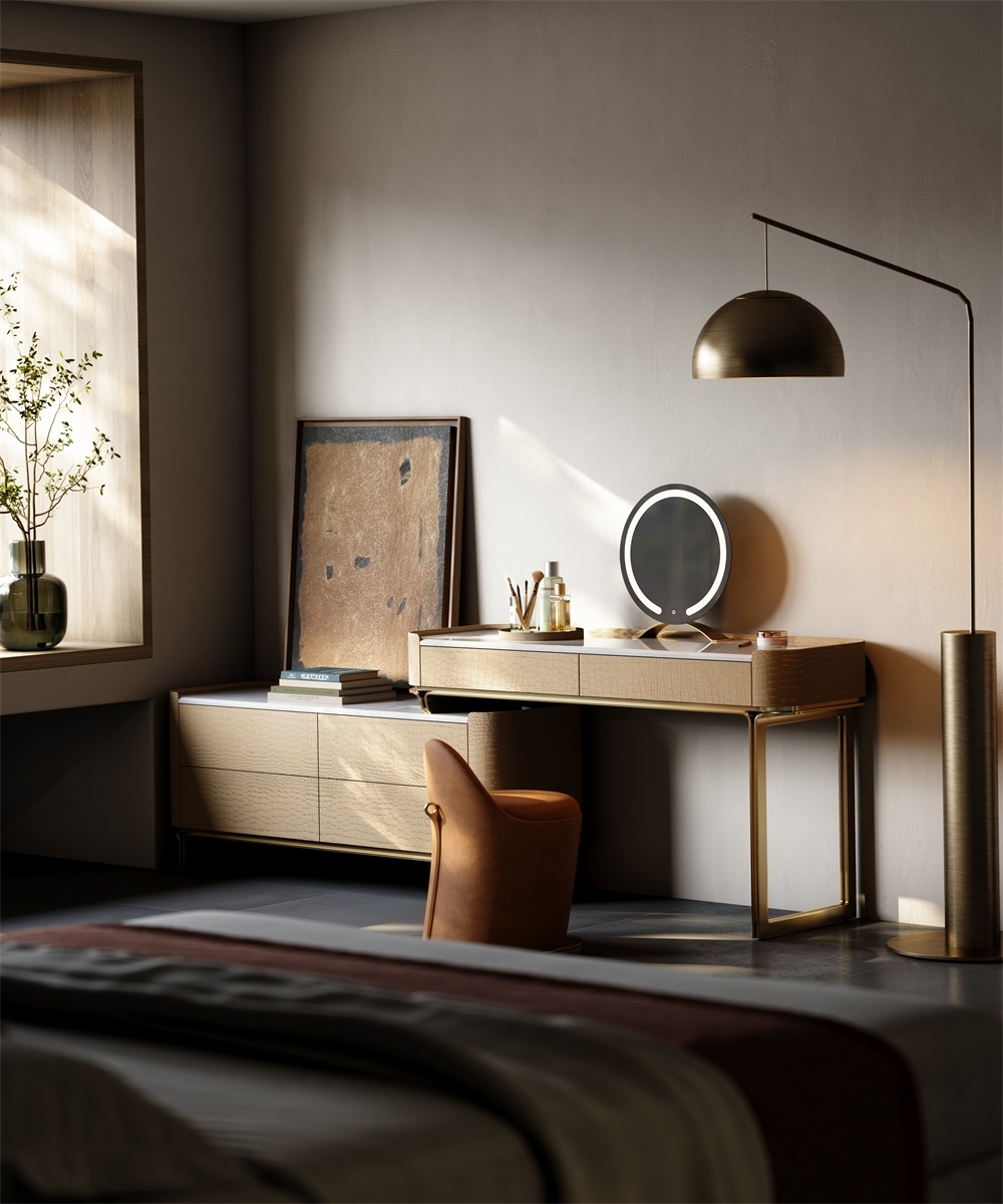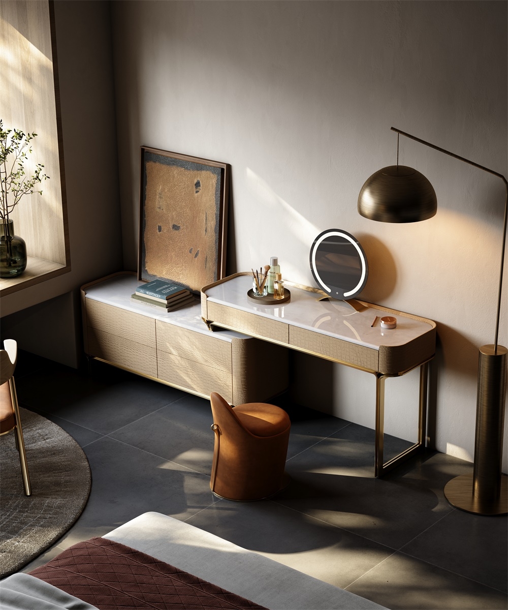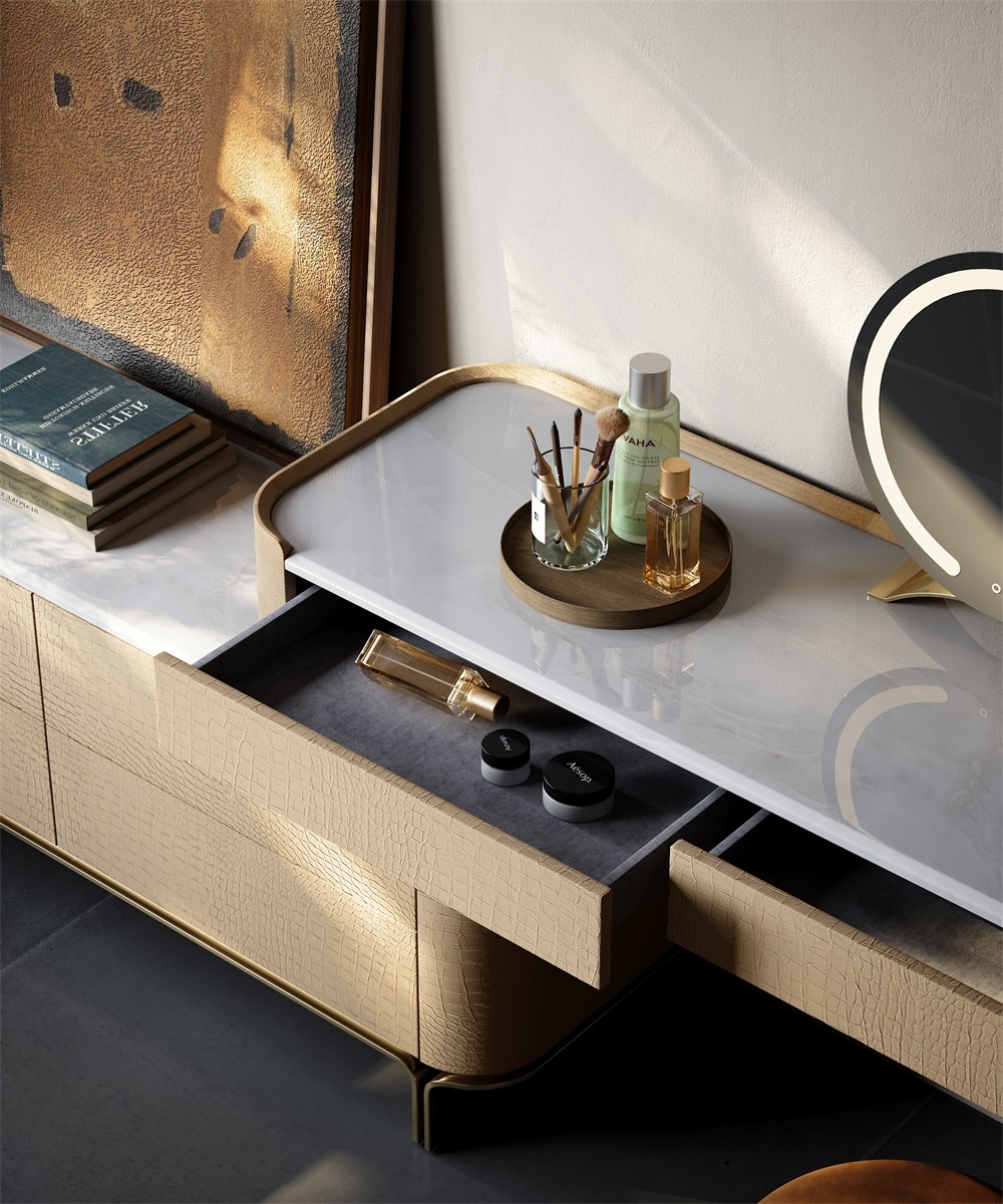 It is the "beauty and order housekeeper" of the bedroom, helping to classify and put away small items for a refined look; it is also a "healing resting table", with aromatherapy and green plants, creating an immersive skin care atmosphere. It is suitable for modern light luxury, Italian simplicity, new Chinese style and other styles, helping the space to advance from a "sleeping area" to a "refined beauty art field".