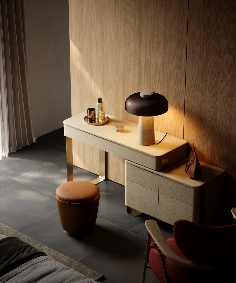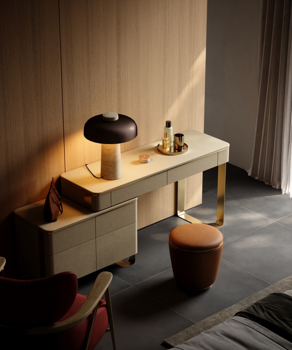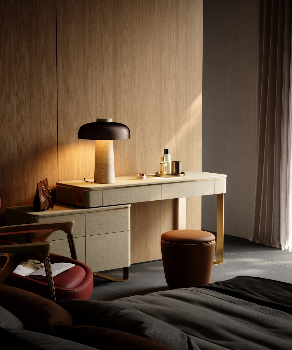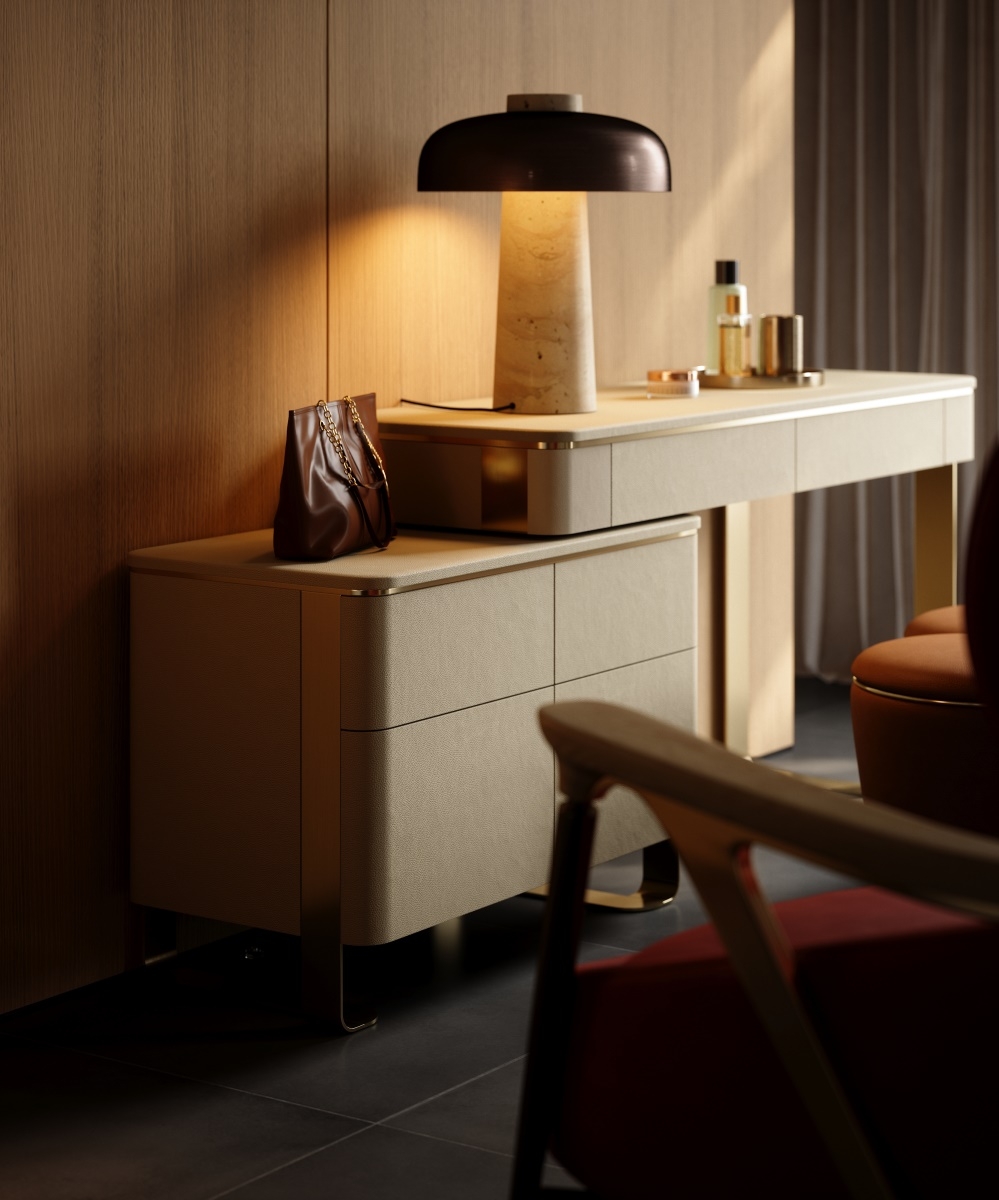 The integrated design of the cabinet and makeup stand maximizes storage function and space utilization. The flexible and movable tabletop size can transform into various layouts, adapting to various spatial arrangements and scene uses.