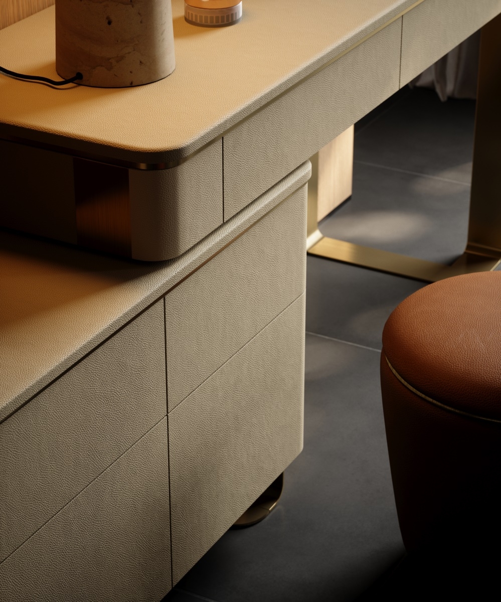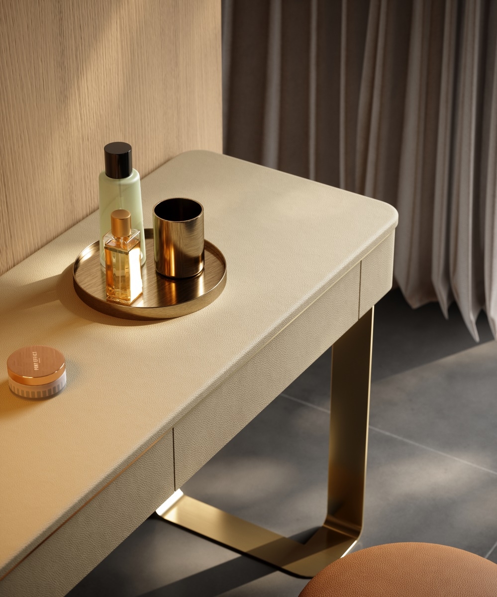 Hardware: champagne gold Beige Leather - Wrapped Vanity Set