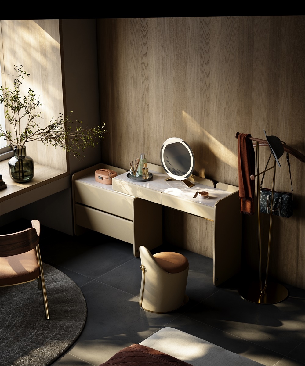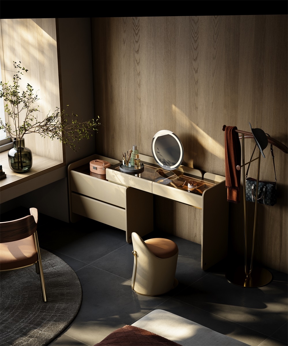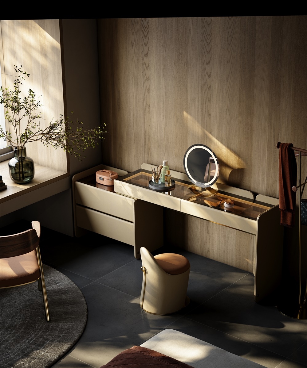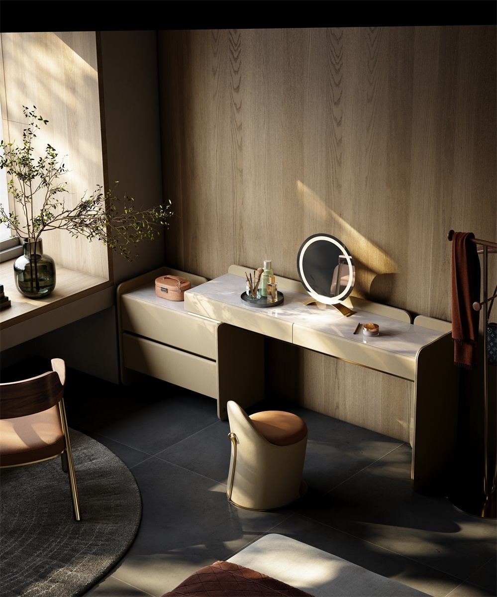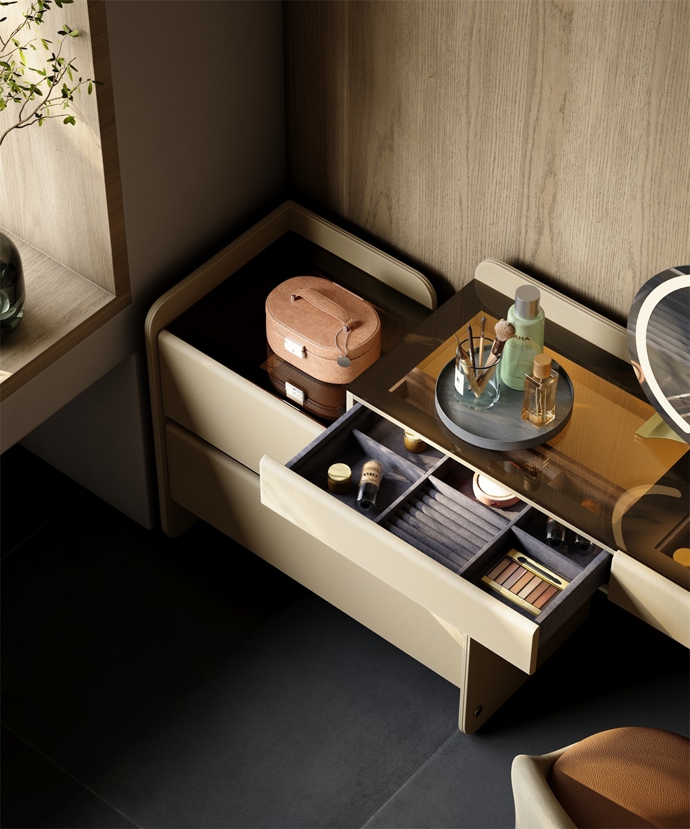 It is the "beauty and order housekeeper" of the bedroom, helping to classify and put away small items for a refined look; it is also a "healing resting table", with aromatherapy and green plants, creating an immersive skin care atmosphere. It is suitable for modern simplicity, Nordic style, Wabi-sabi style and other styles, helping the space to advance from a "sleeping area" to a "refined beauty area".