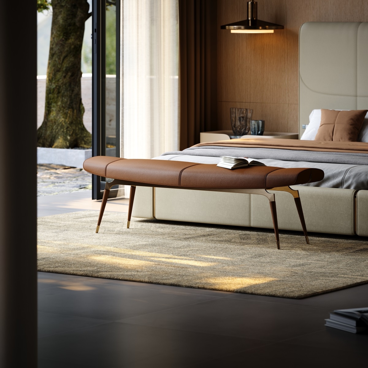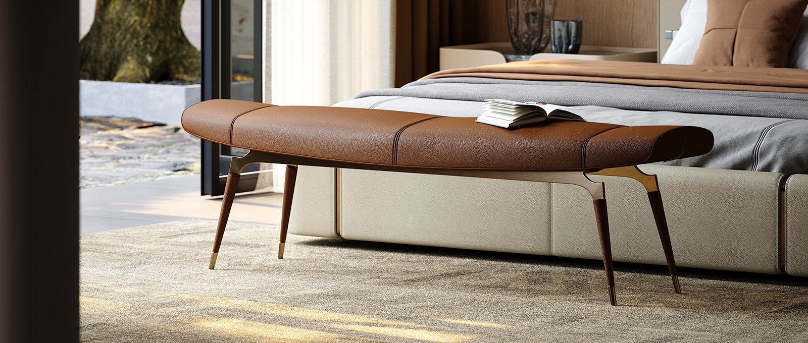 a minimalist beauty that occupies the center of the visual field. The metal support legs are small and exquisite