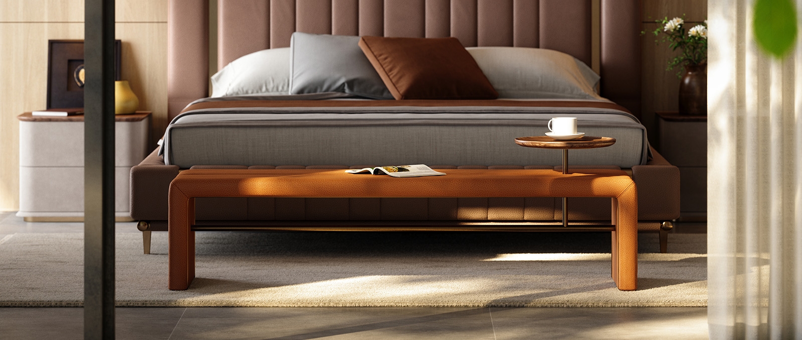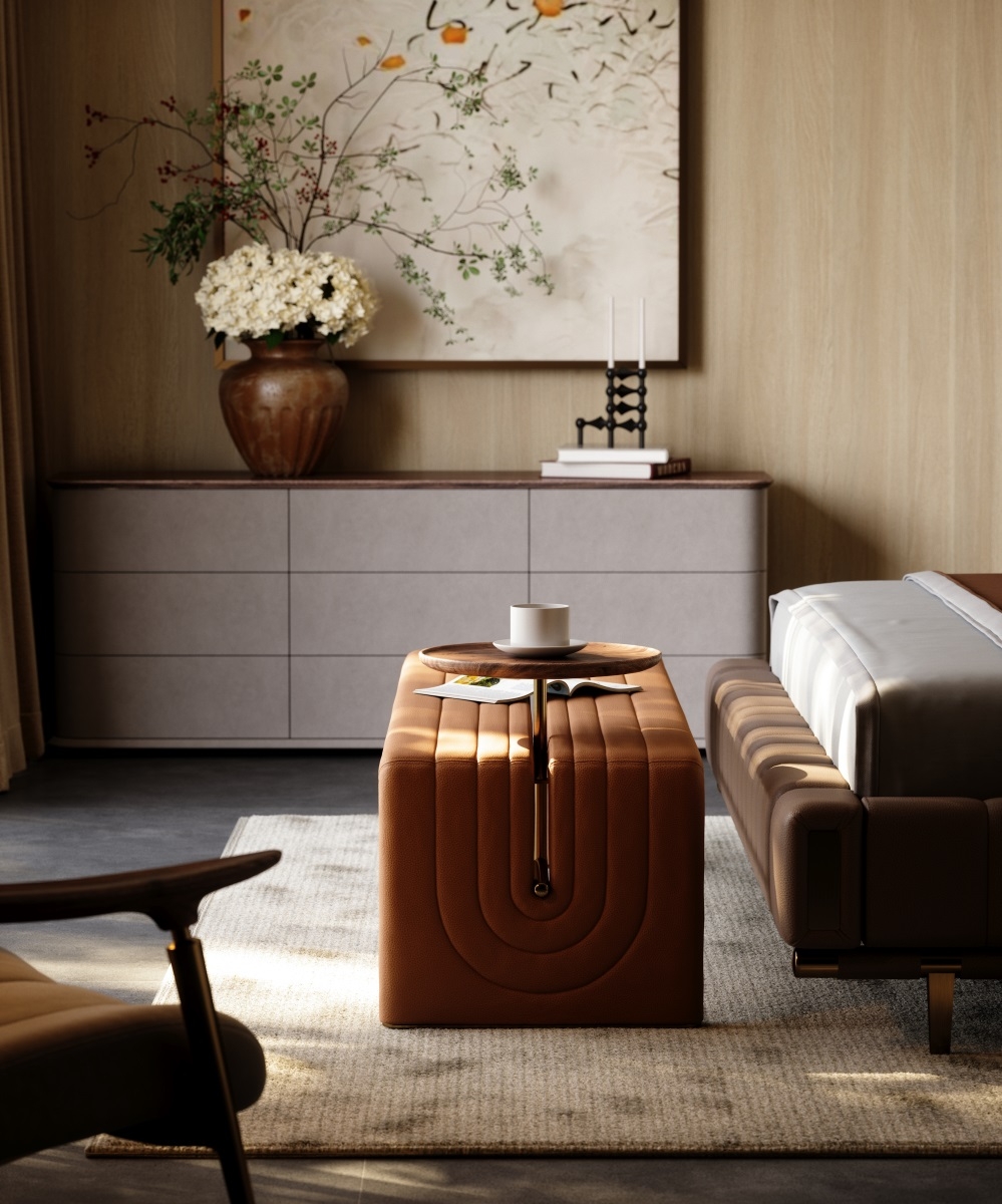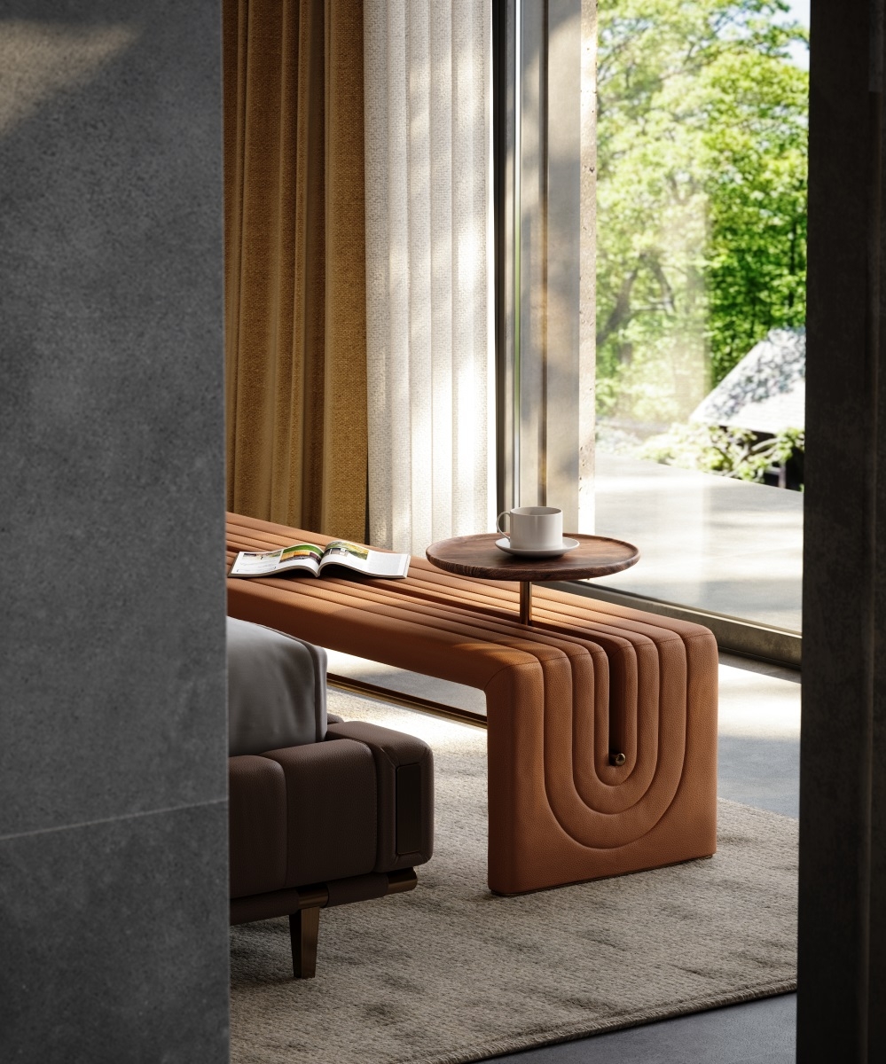 The most distinctive feature of the Pillar series is the cylindrical metal leg, inspired by colonnade design.