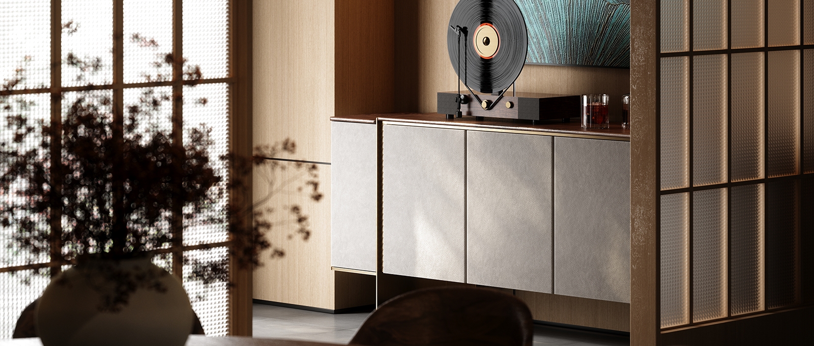 Luxury sideboard for home entertainment, perfect for whiskey & vinyl setups
