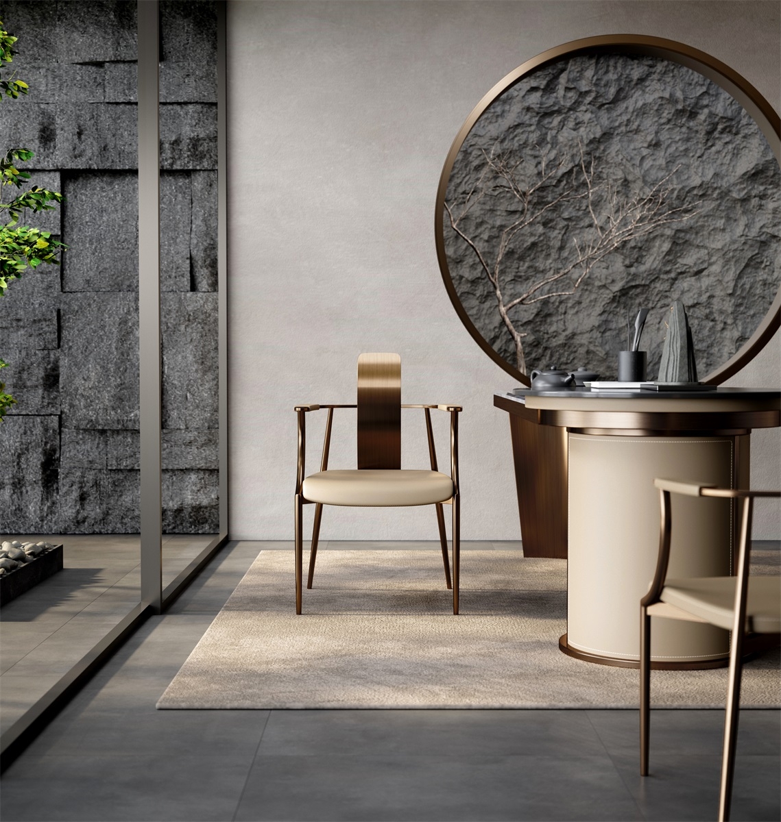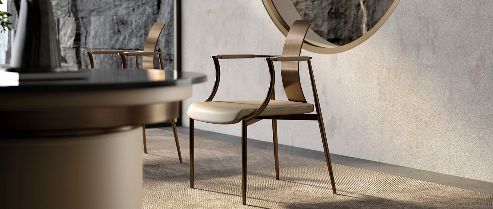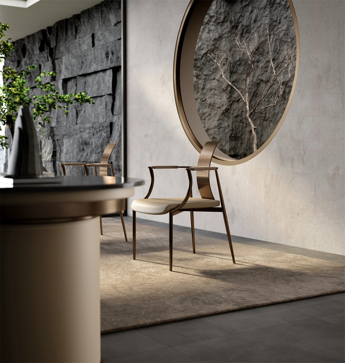 Mortise and tenon joints are called the "soul" of furniture. The components are tightly interlocked to make the furniture stronger and more stable. Different structures have derived a variety of combinations. The Kuiran series is a tribute to the mortise and tenon joints. It uses metal craftsmanship to reproduce the craftsman's heart and gives people a sense of stability.Combines beige leather upholstery, metallic - toned metal frames, and a wooden backrest. Creates a modern, sophisticated look.
