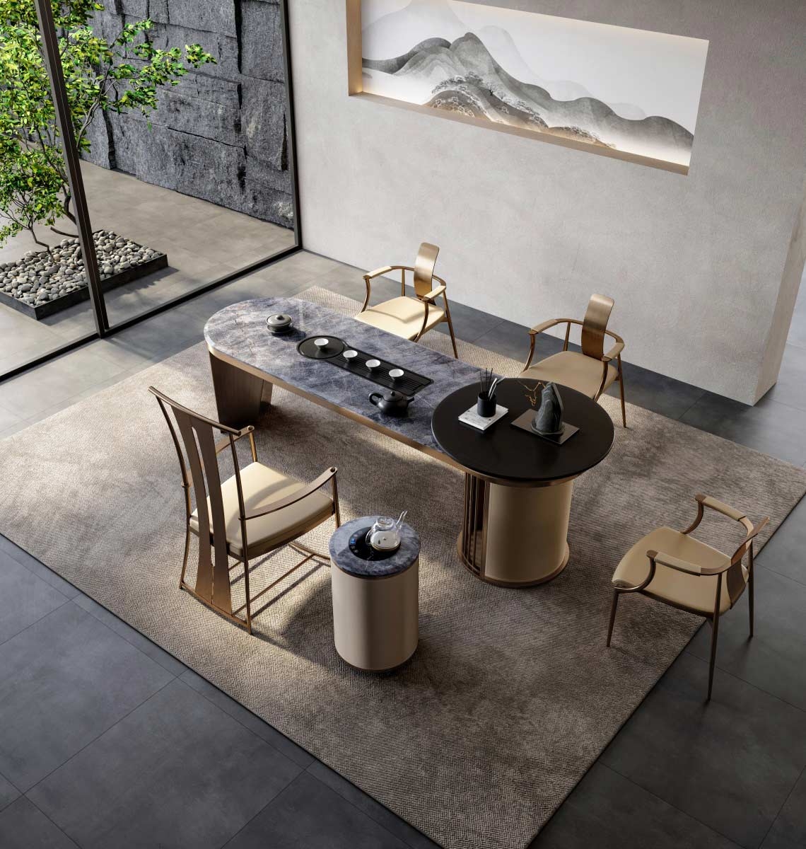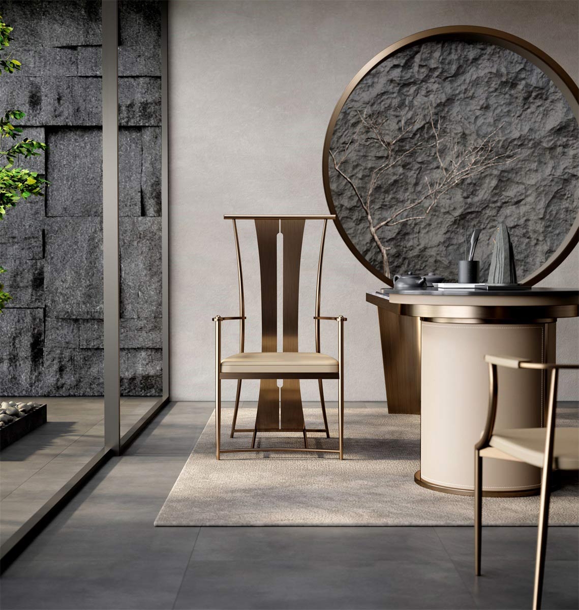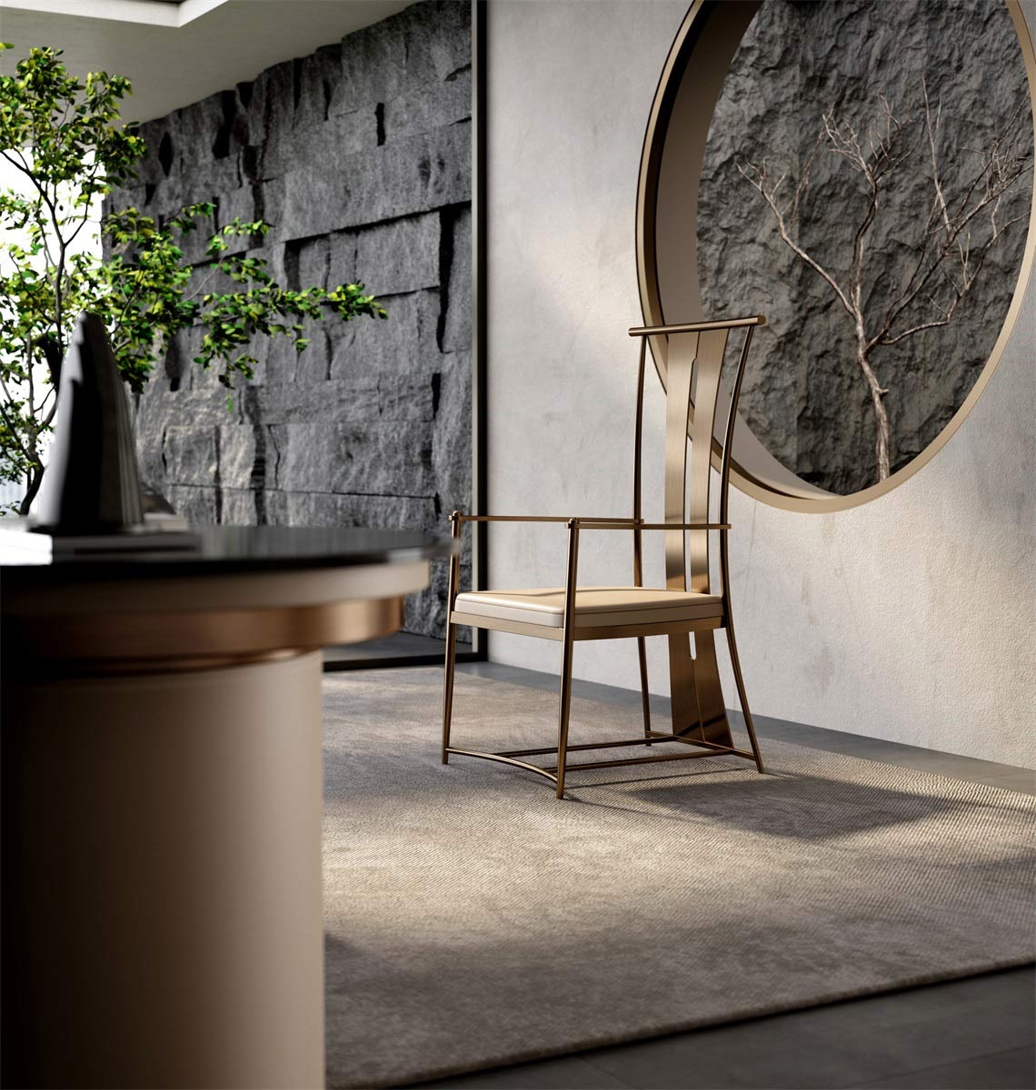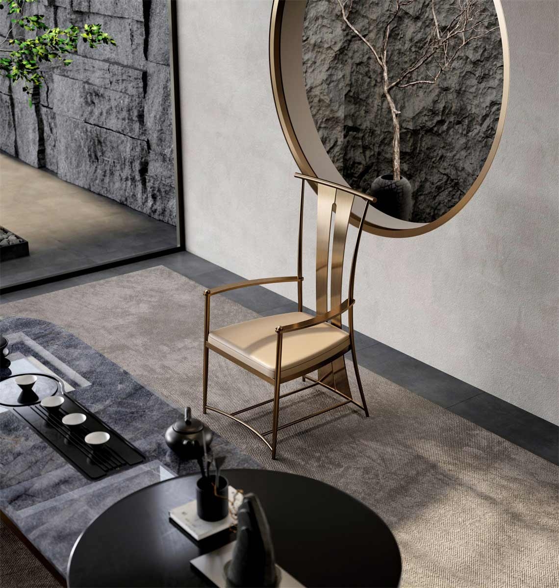 The high back design not only provides excellent support, but also adds a sense of solemnity and majesty. The hollow shape in the center of the chair back, like an elegant arc running through it, is decorative and reflects the designer's profound understanding of structural mechanics.