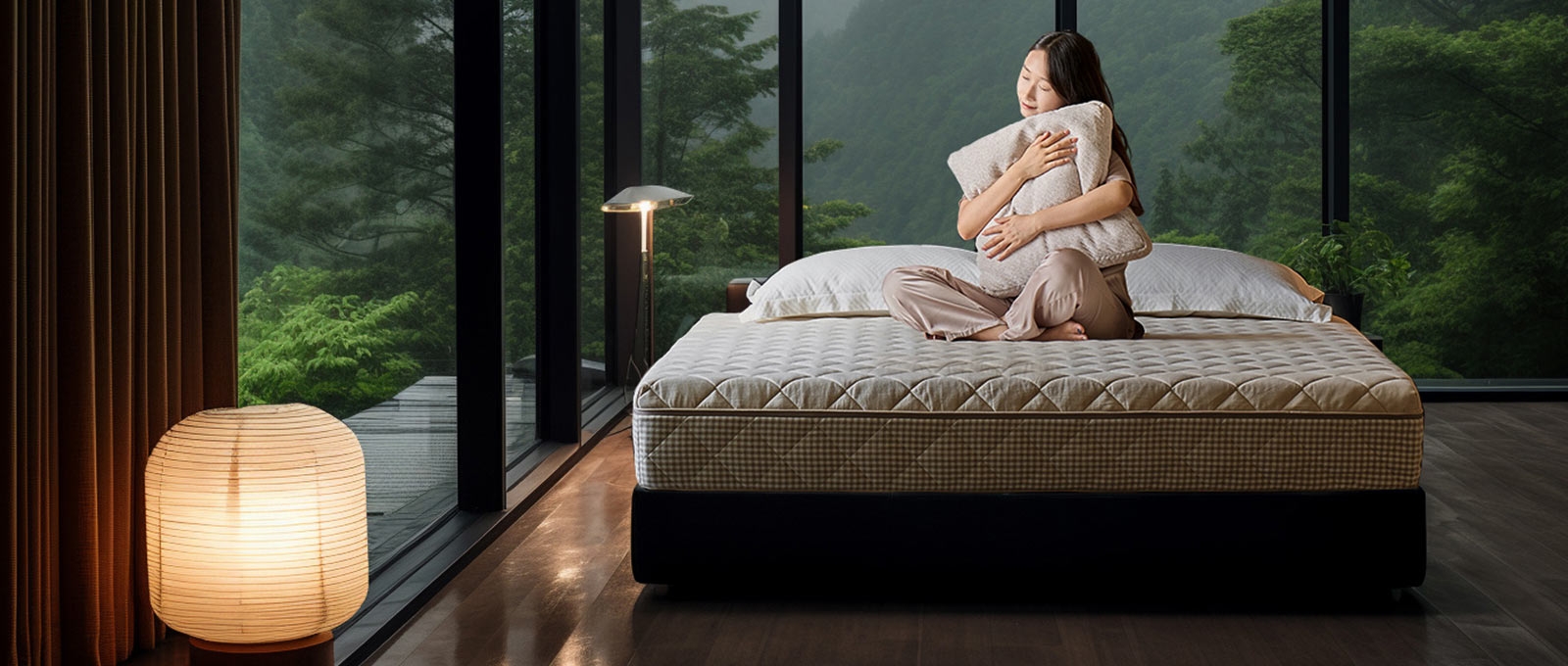 Rebirth on every lazy rainy day. The sound of rain is a wonderful gift from nature, and even the moist air becomes happy. Enjoy the freedom of the night as if sleeping in the vast world.The clean, white quilted top contrasts nicely with the neutral - toned foundation, making it a visually appealing addition to any bedroom decor. It can easily match different bed frames and bedding styles.