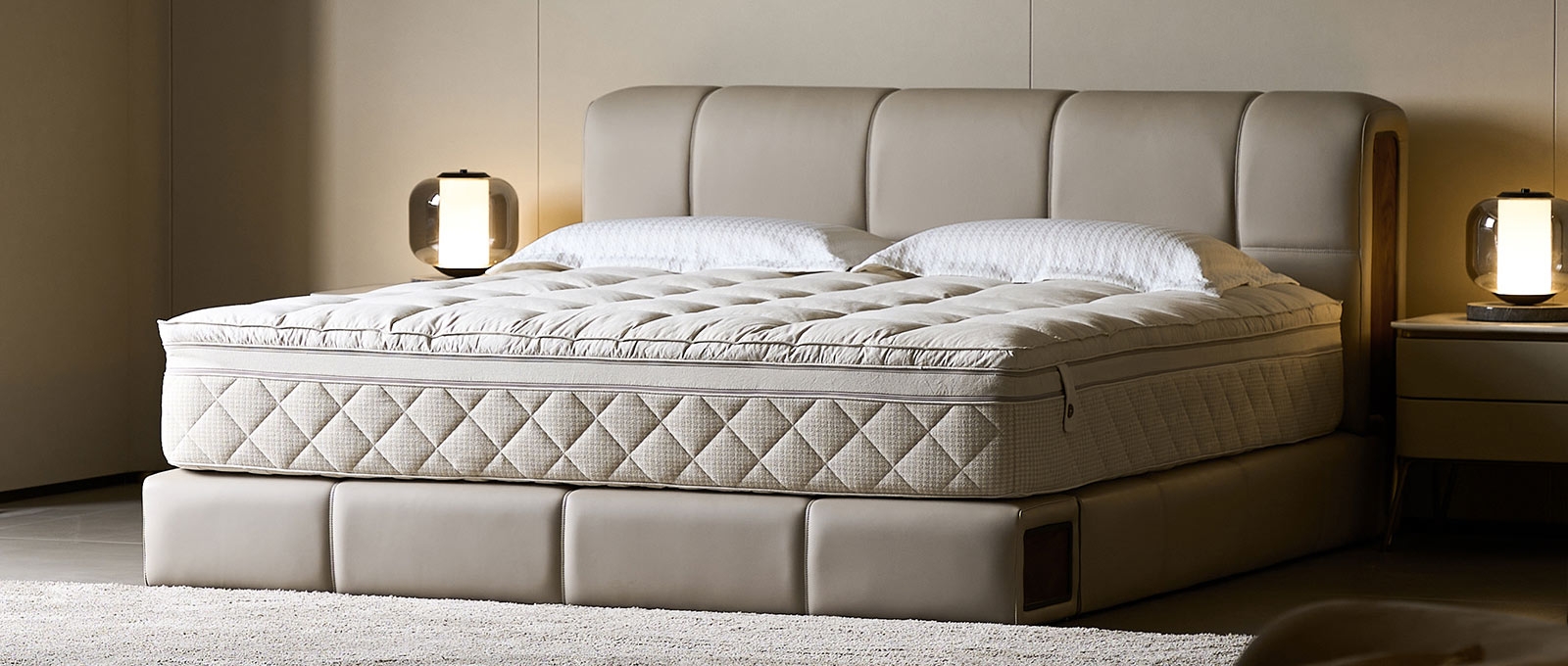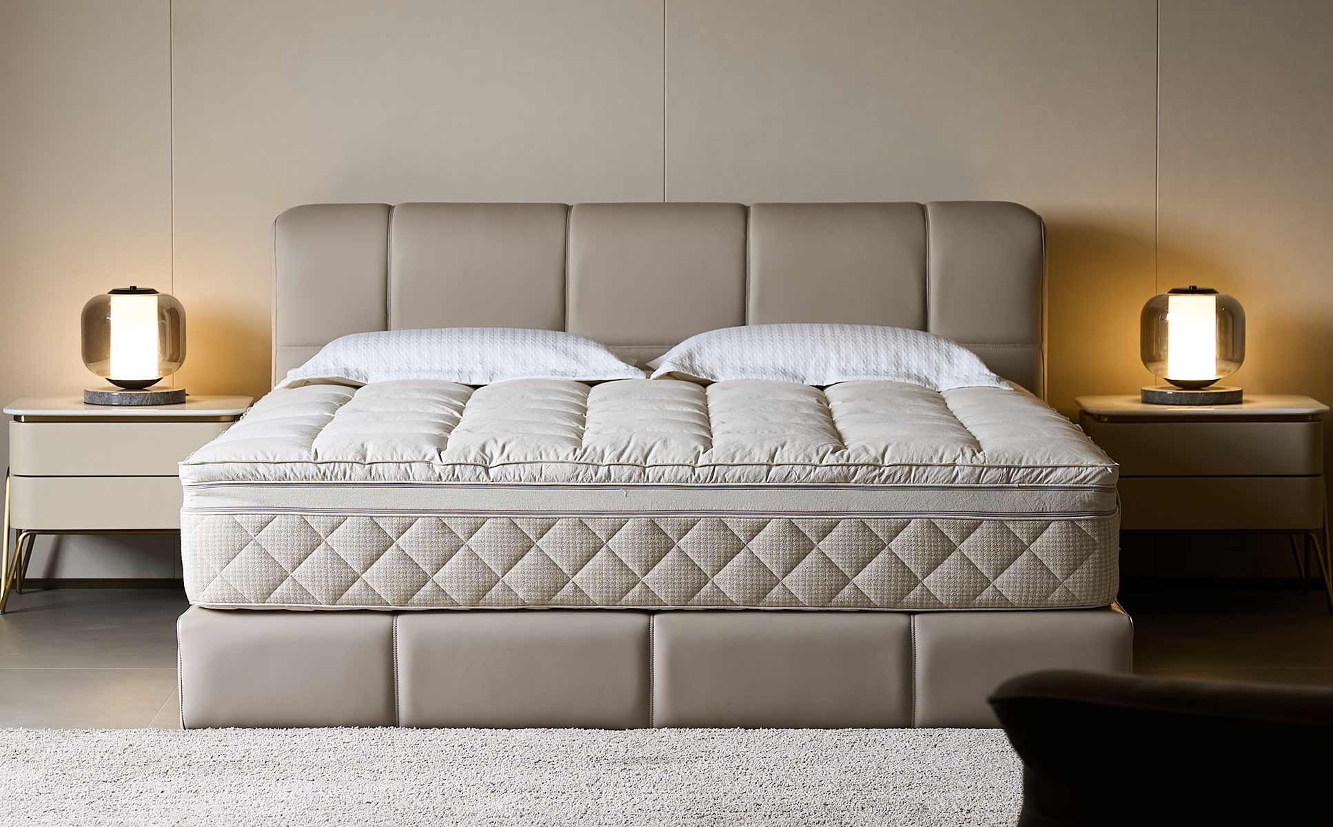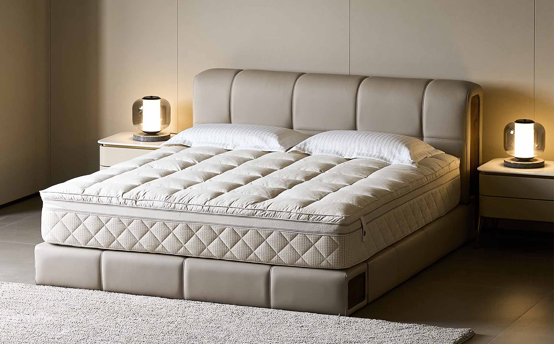 With a neat and regular appearance like sugar cubes, it interprets the simple and sweet art of sleeping. In a gentle dream, every inch of skin can feel the comfort and warm embrace, making every rest a sweet enjoyment.The clean, white quilted top contrasts nicely with the neutral - toned foundation, making it a visually appealing addition to any bedroom decor. It can easily match different bed frames and bedding styles.