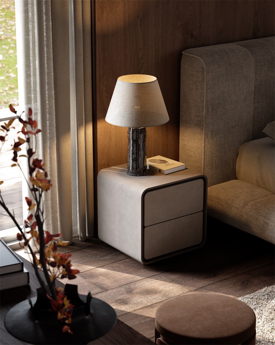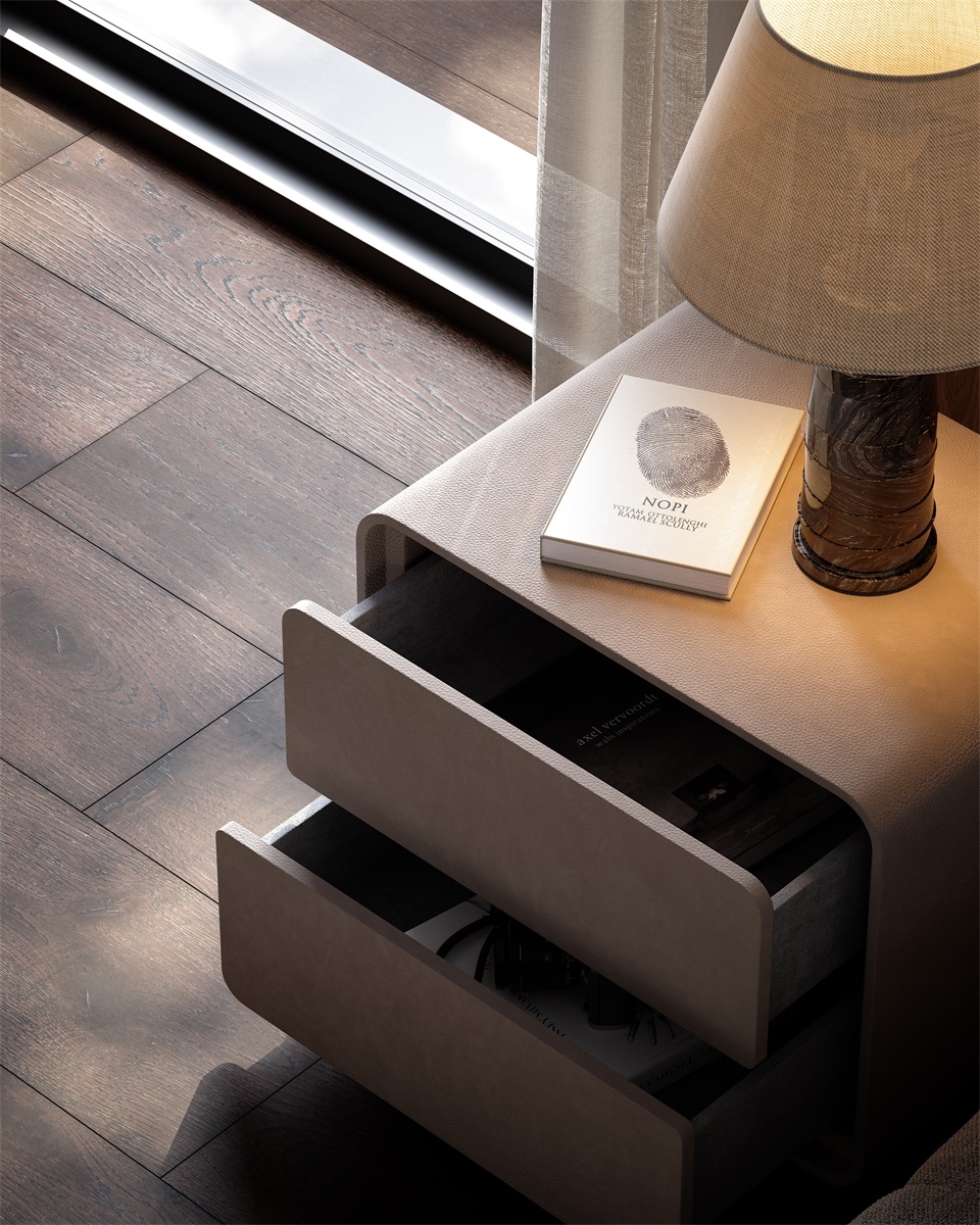 Textured Leather - Like Finish: The nightstand features a soft, pebble - textured surface that mimics high - end leather. It offers a luxurious touch and a sophisticated look, resistant to daily wear while adding an elegant vibe to your space.