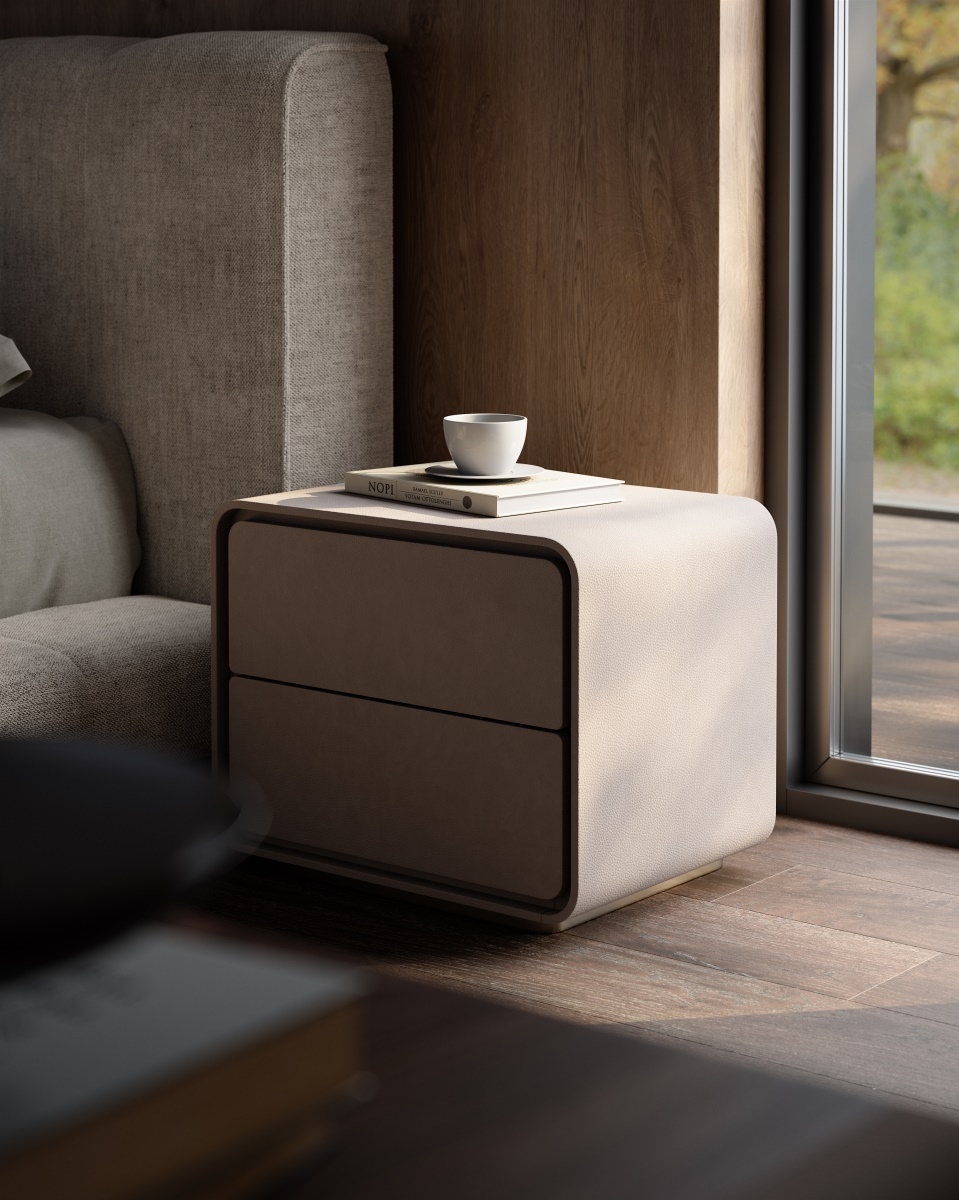 Minimalist Leather Nightstand Textured Leather Bedside Table