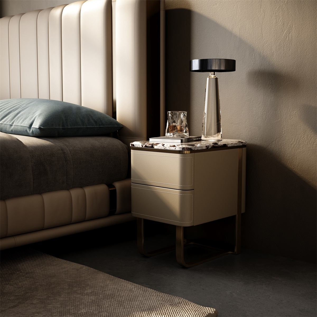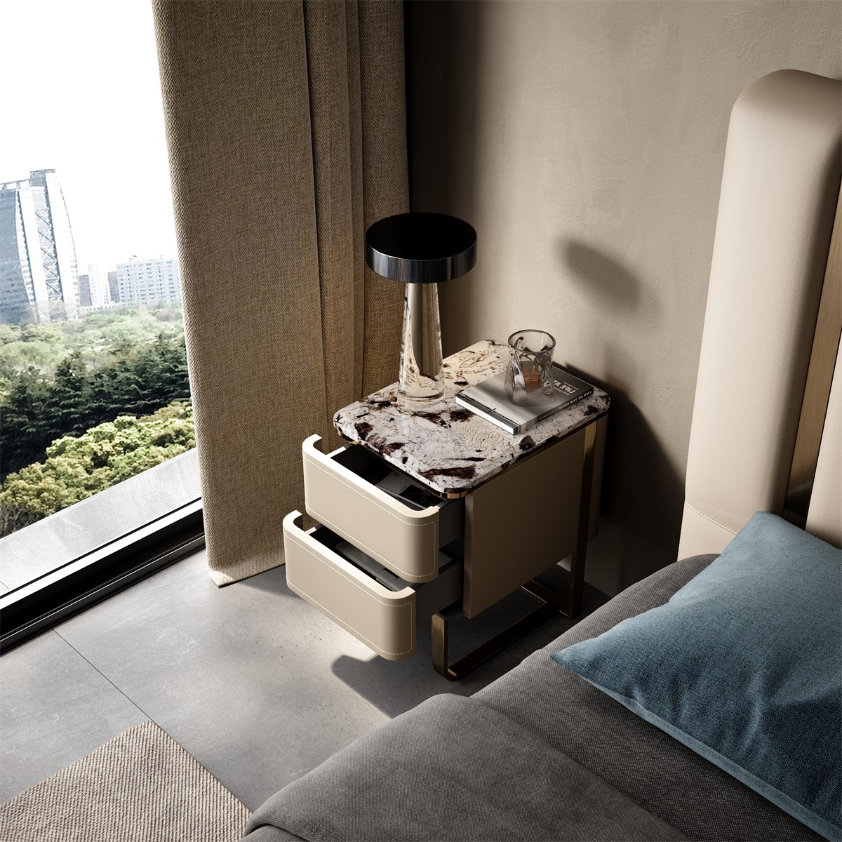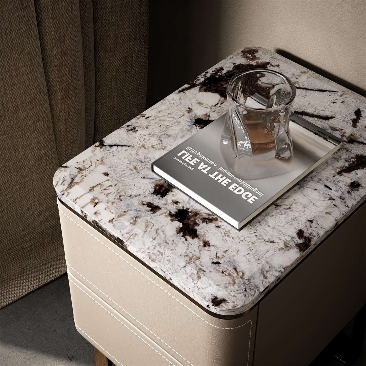 Natural Stone, Leather and Metal Nightstand