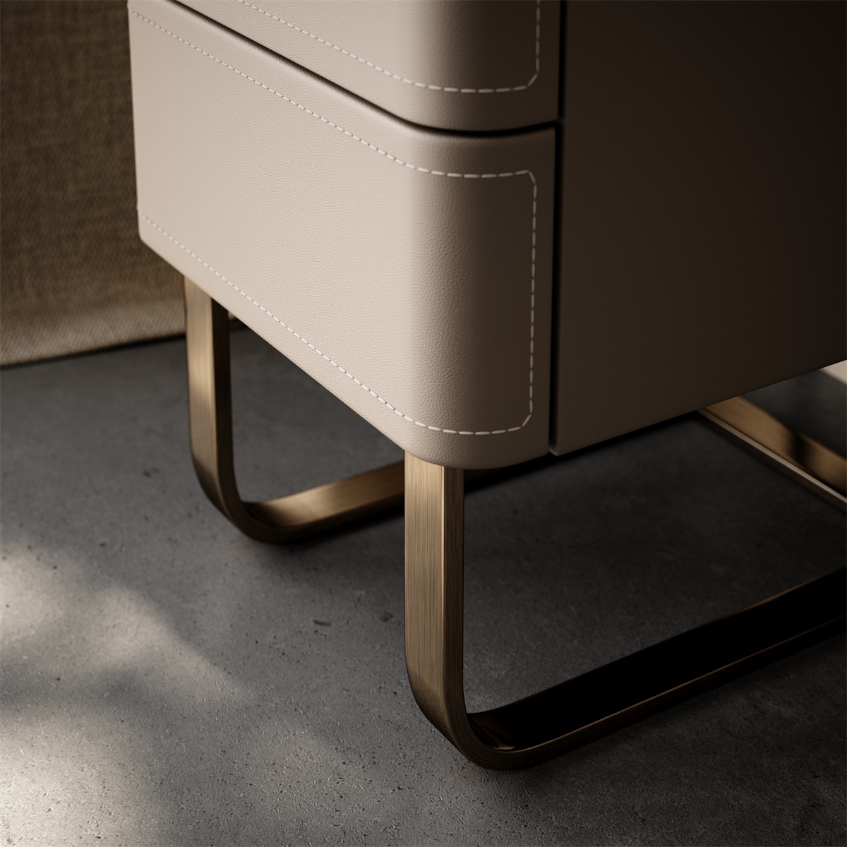 The countertop is made of natural rock slabs with a unique texture like an art painting. After high-temperature calcination and anti-seepage treatment, it is wear-resistant, stain-resistant and has its own high-level tension. The cabinet body is upholstered in genuine leather, which is delicate and skin-friendly, complementing the warm luster of the metal legs.