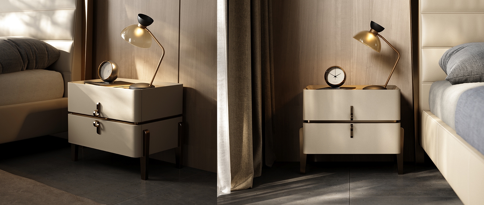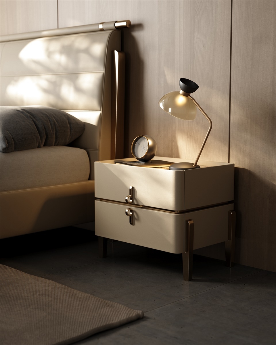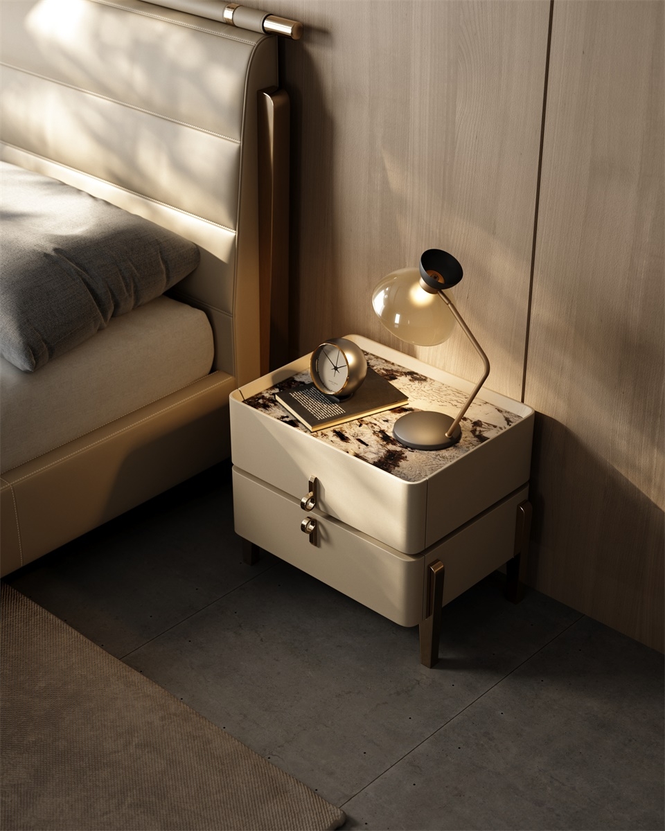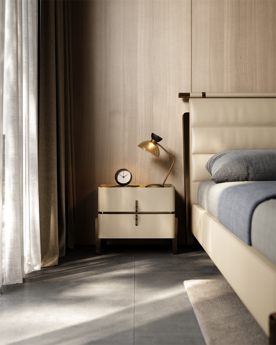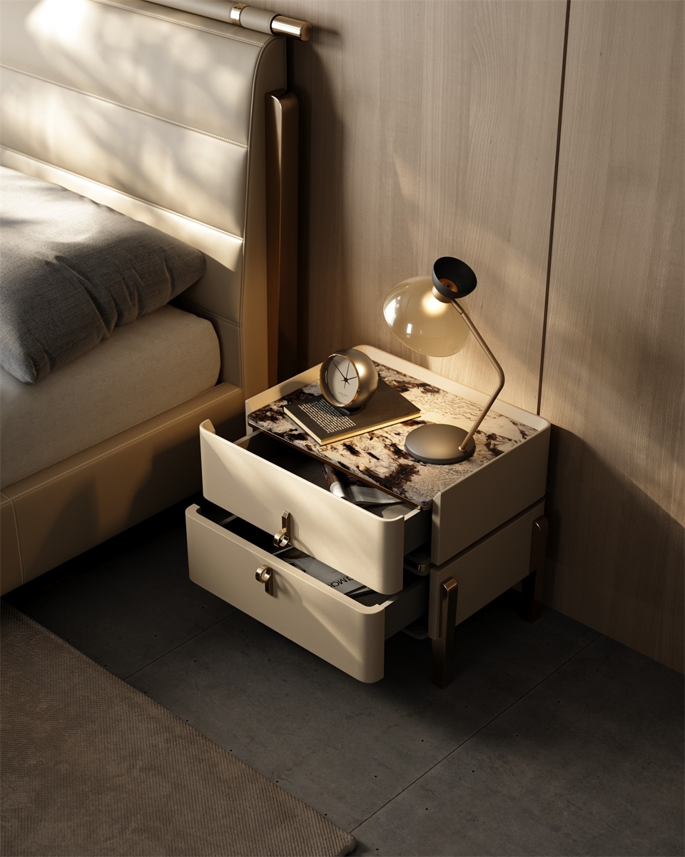 The leather stitching is CNC sewing + hand-trimming, with a precise stitch length of 0.2mm, and the lines are smooth and fit the cabinet body; the joints between the solid wood legs and the leather are hand-sanded + polished, smooth and burr-free; the metal handles are matched with the cabinet body, and are hand-adjusted, with sizes and curvatures that fit the hands, integrating "exquisite detailism" into every drawer structure.