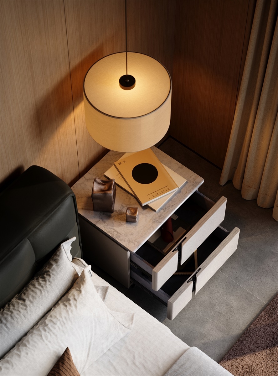 Marble - Top Leather Nightstand Designer Framed Leather Bedside