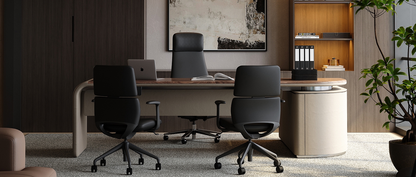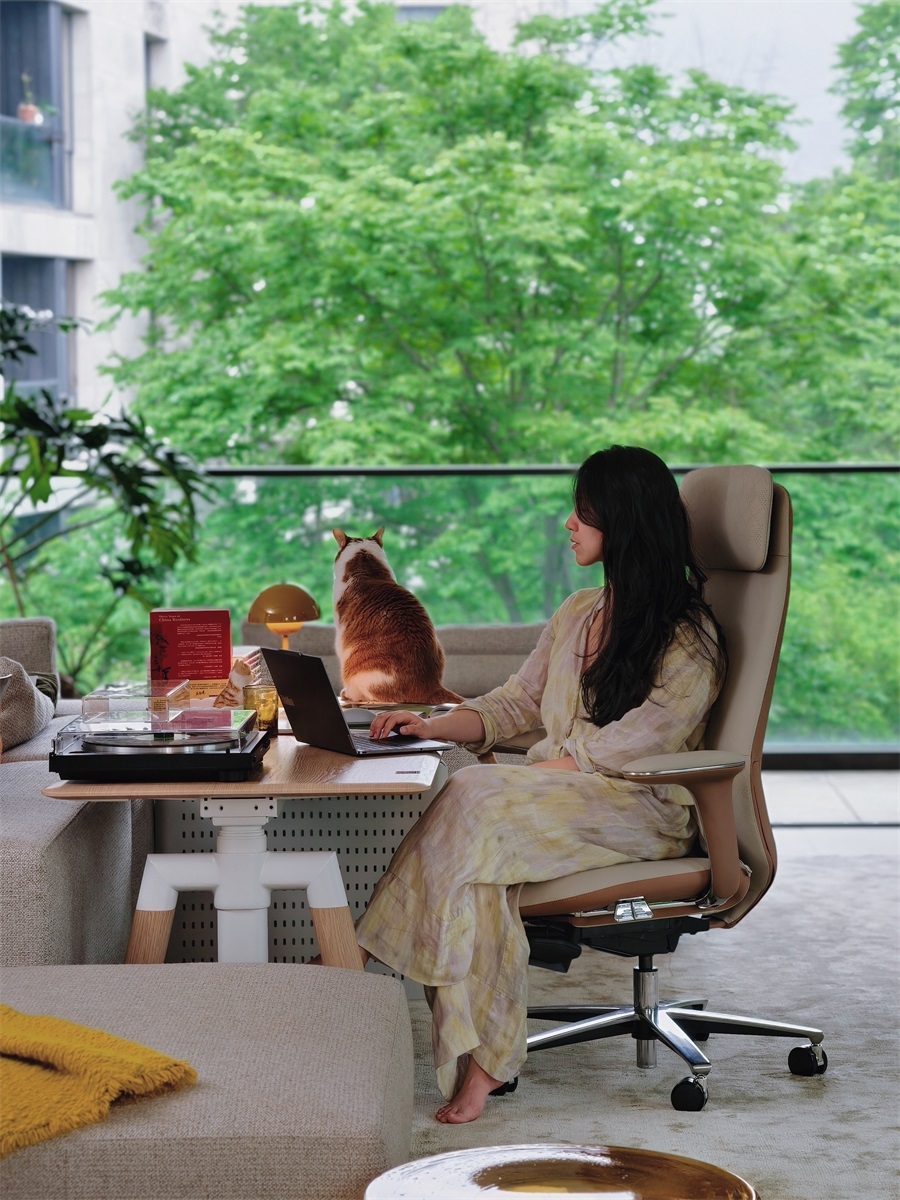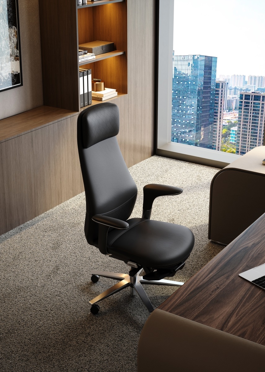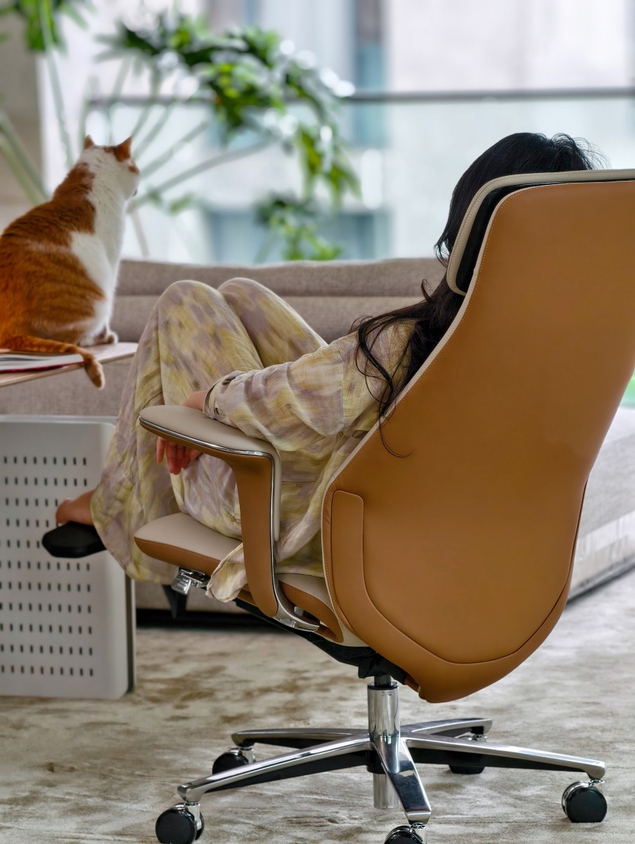 The chair body is made of high-quality genuine leather, which has both delicate touch and wear-resistant properties. The diamond pattern design on the surface adds a sense of refinement. The metal five-star footrest is sturdy and durable, with a neat luster. The combination of the two injects a high-end atmosphere into the office space.